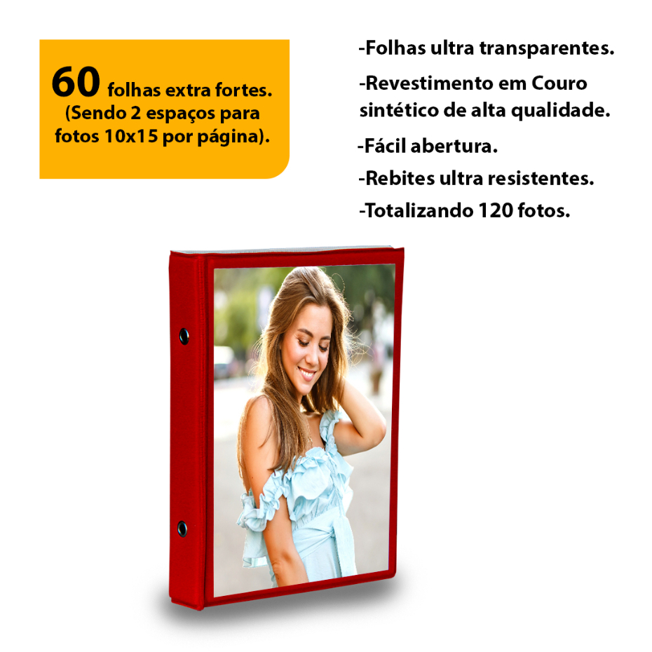 Álbum para fotos 10x15 para 100 Fotos - Visor Transparente/ Foto na capa