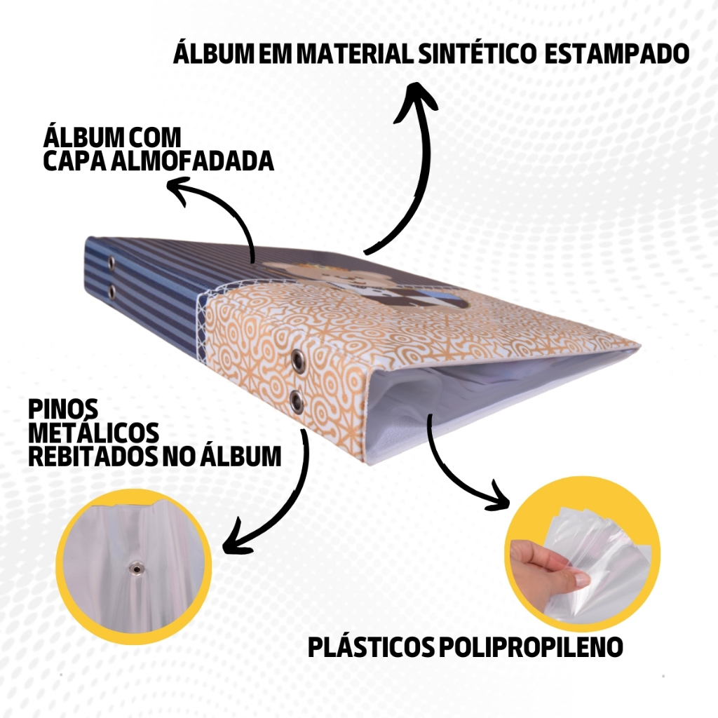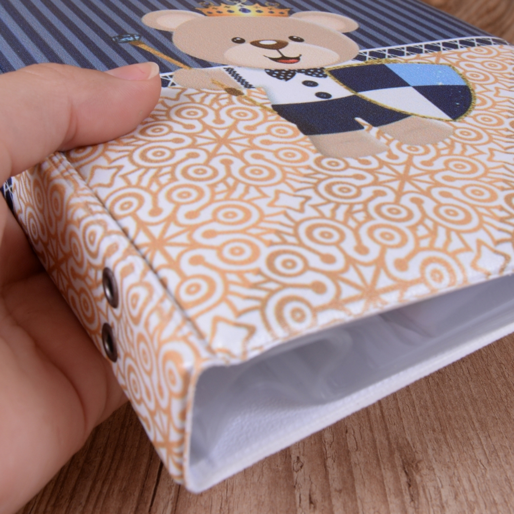 Álbum Fotográfico 15x21 para 100 Fotos URSO ESCUDO Coroa Bebê Infantil Azul