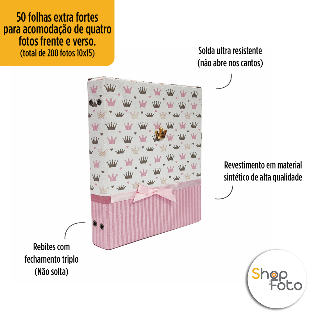 Álbum para fotos 10x15 para 200 Fotos - Linha Luxo/ Bebê/ Infantil/ Diário/ Menino/ Menina