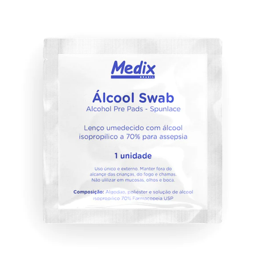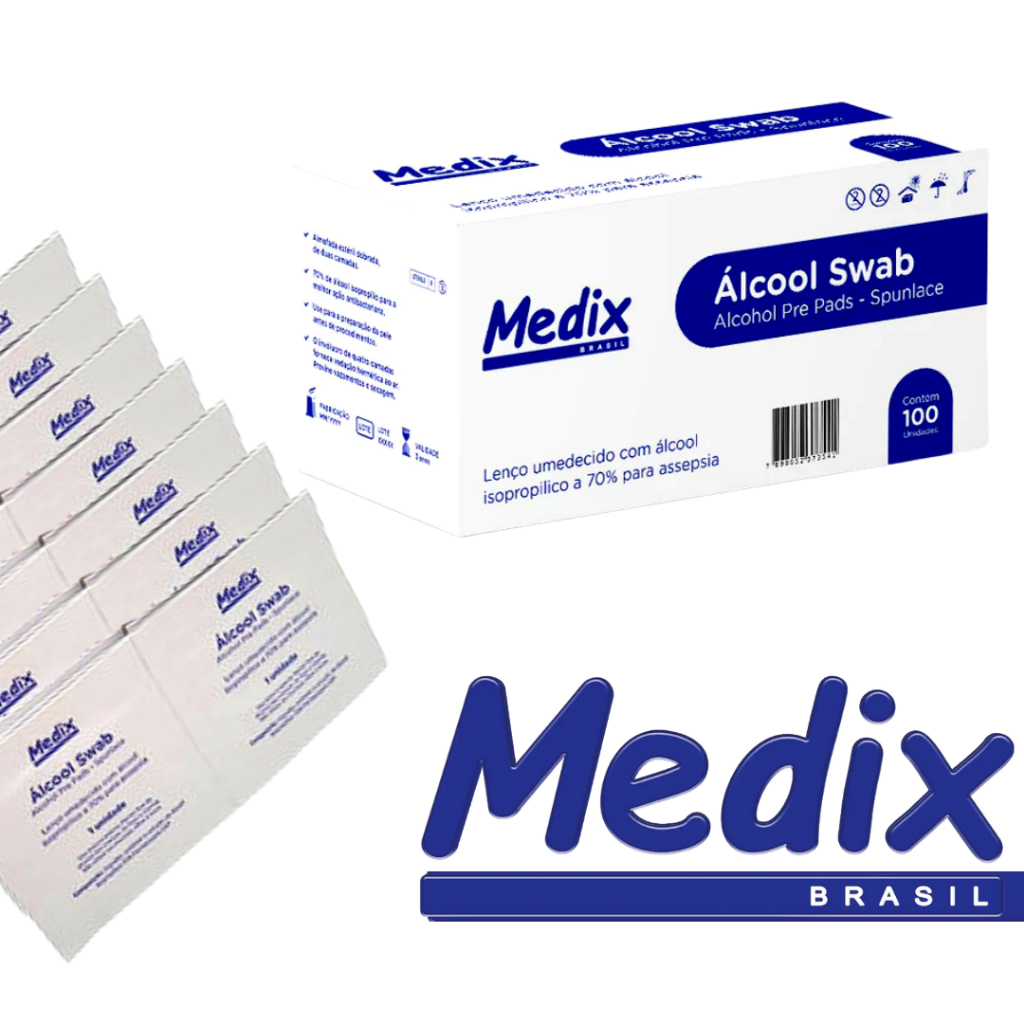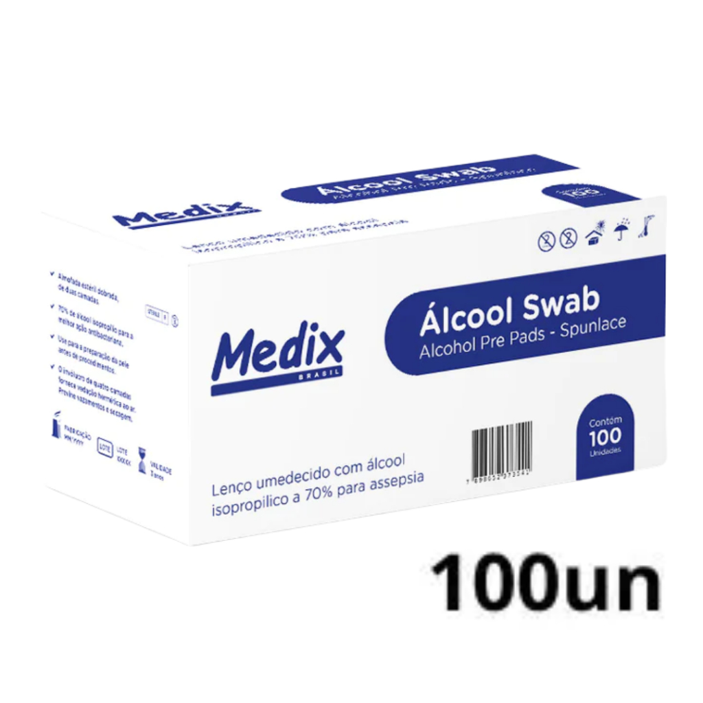 Álcool Swab Isopropílico Lenço Umedecido p/ Assepsia 100u Medix Lenço Umedecido Sachê Asséptico