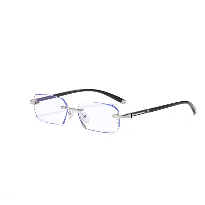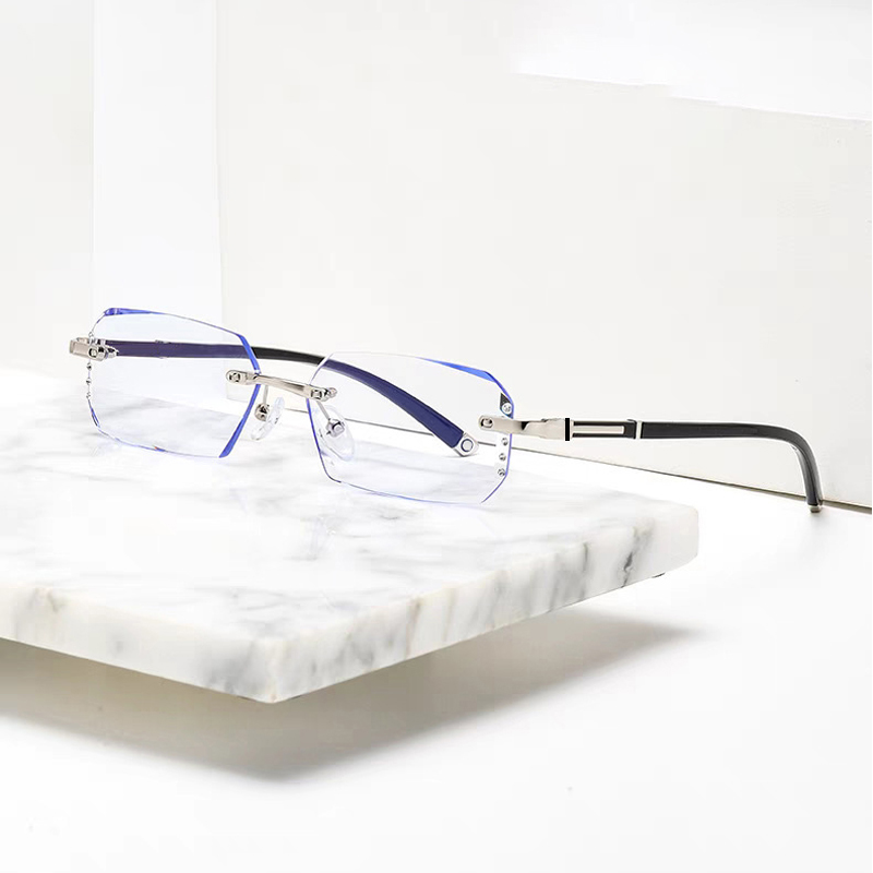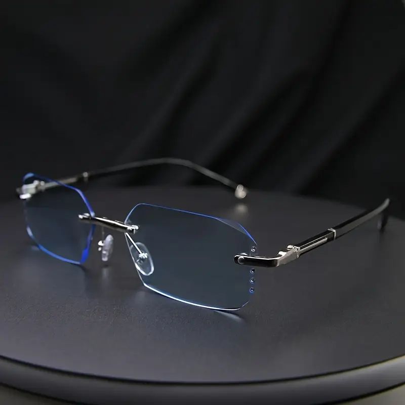 Óculos De Moda Masculina Estilo Vintage , Armação De Metal Sem Aro , Lente Plana Moderna , Anti-Radiação , Aparência Ret