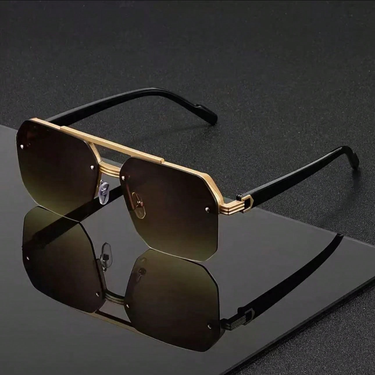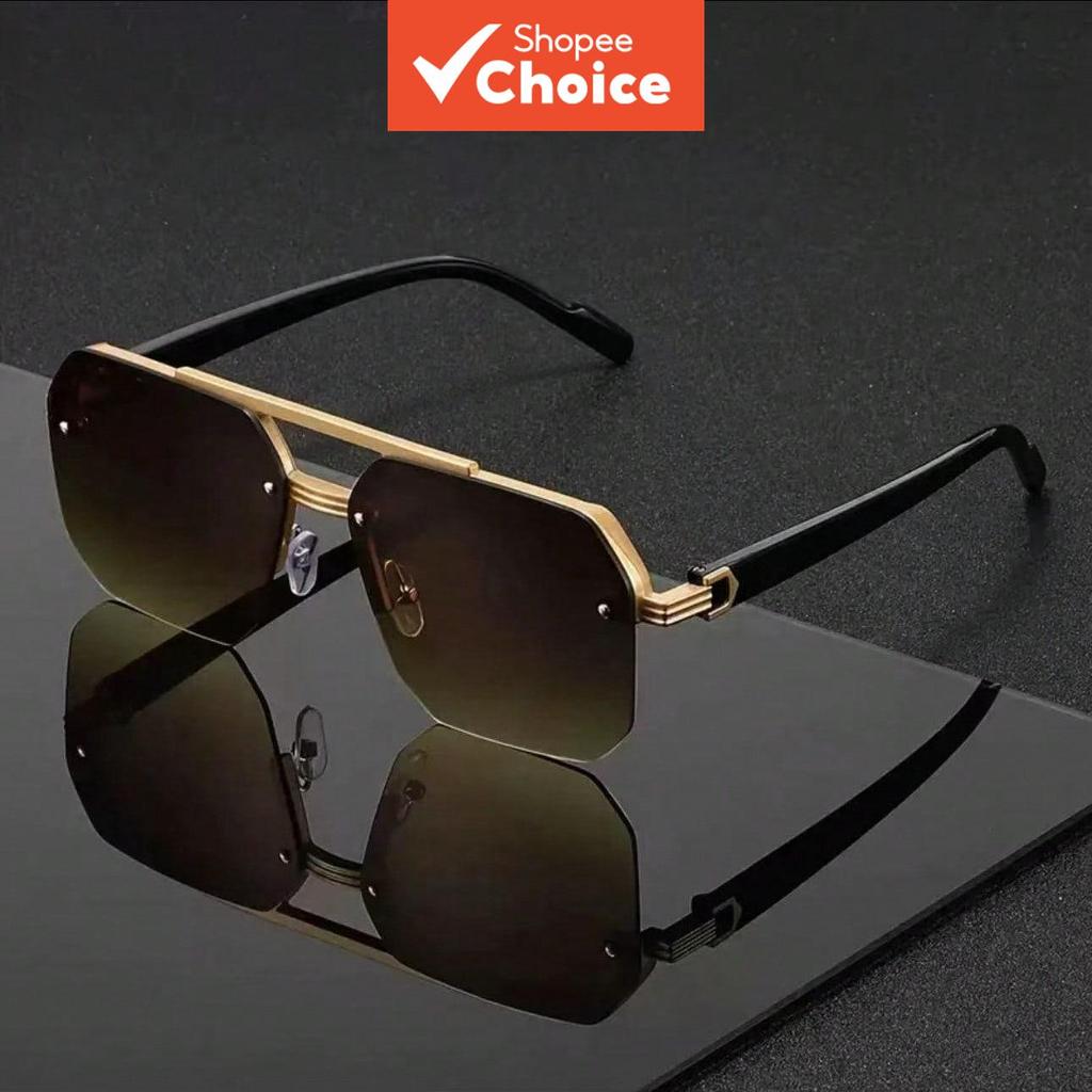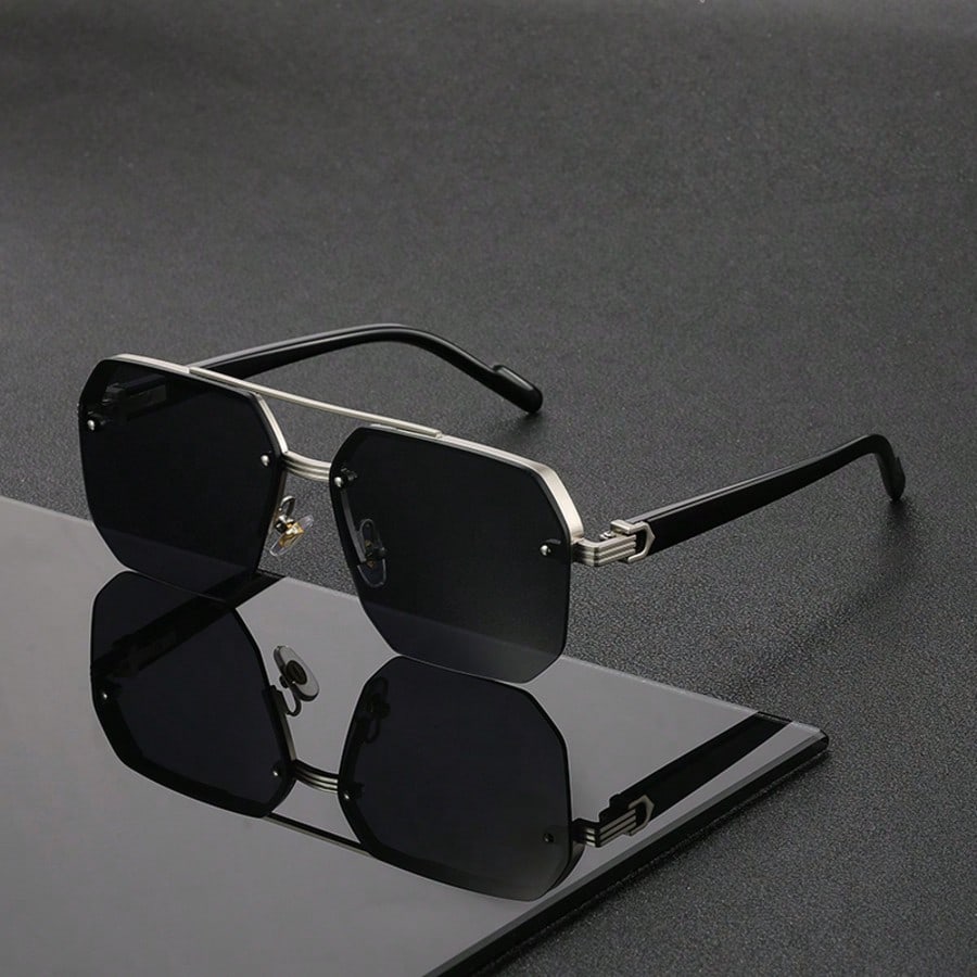 Óculos De Sol Clássicos Retrô De Ponte Dupla Para Mulheres E Homens , Moda Unissex Com Borda Cortada De Metal UV400 Uso