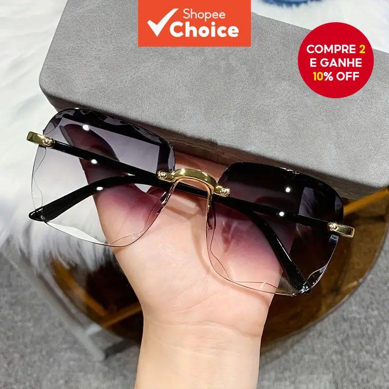 Óculos De Sol Quadrados Sem Moldura Com Borda Cortada Na Moda E Elegante Para Mulheres Estilo De Rua