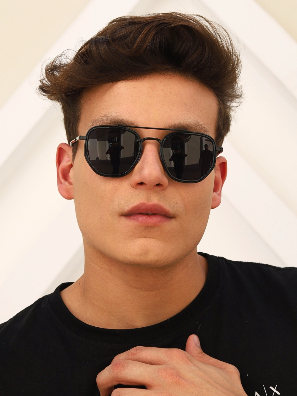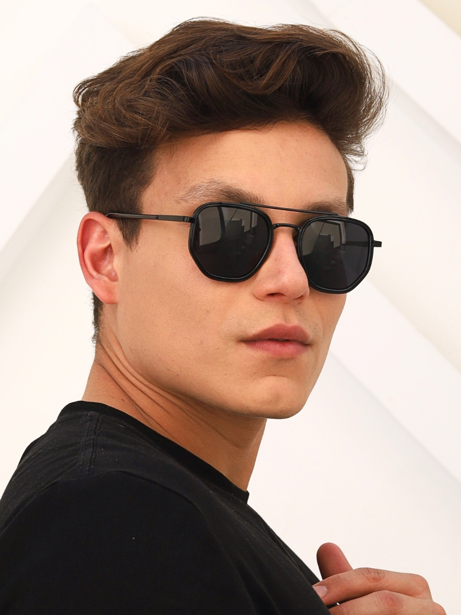 Óculos de Sol Hexagonal Aviador Preto All Black Premium Classico Reforçado uv400 Masculino Feminino