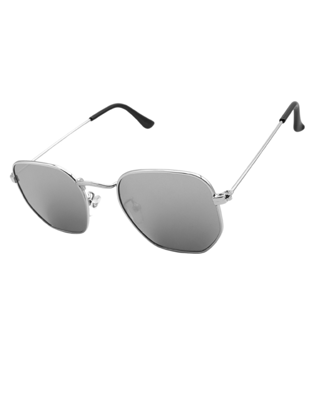 Óculos de Sol Hexagonal Prata Espelhado Armação em Metal Estilo Aviador uv400 Feminino Masculino