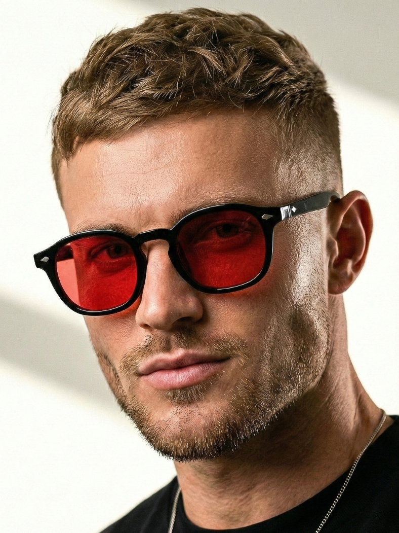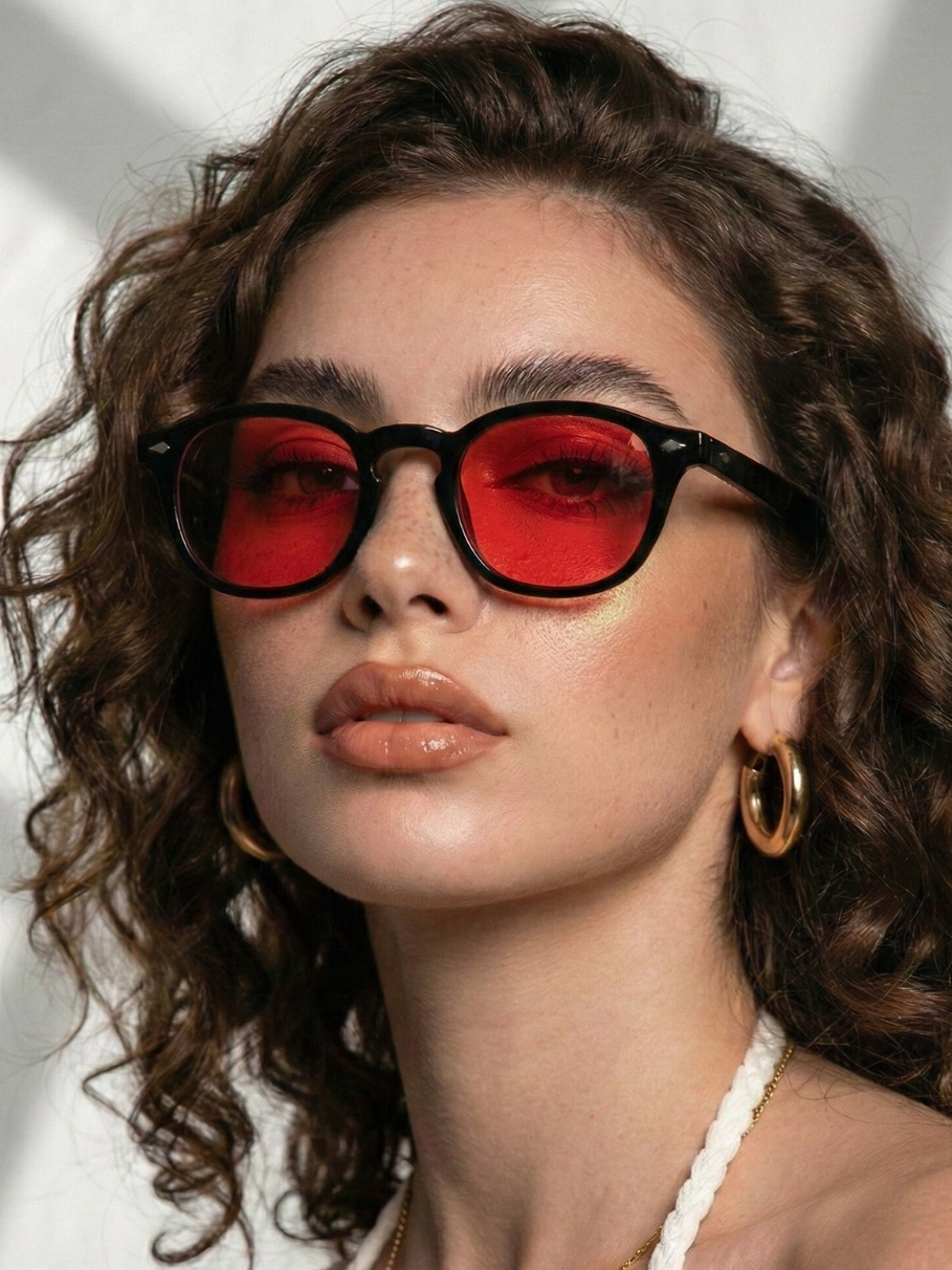 Óculos de Sol Redondo Preto e Vermelho Premium Retro Classico uv400 Masculino Feminino