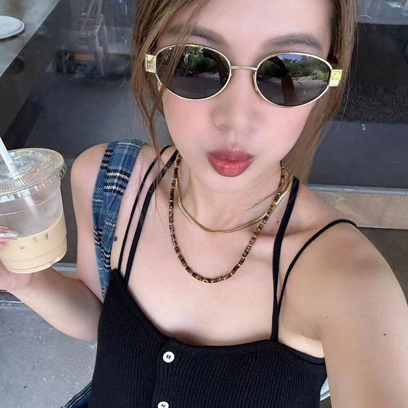 Óculos de sol vintage oval de armação metálica para mulheres - Moda 2025.