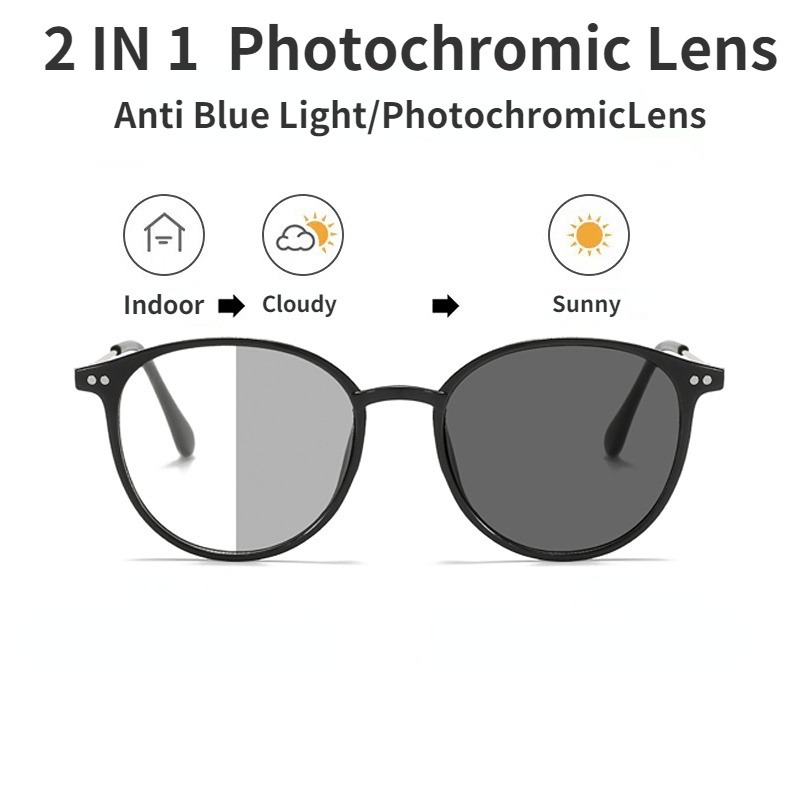 Óculos fotochromáticos anti-radiação com bloqueio de luz azul, para mulheres e homens, com armação de metal.
