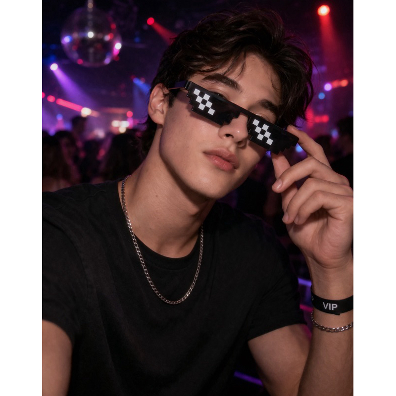 Óculos preto Meme Thug Life pixel de plástico para festas