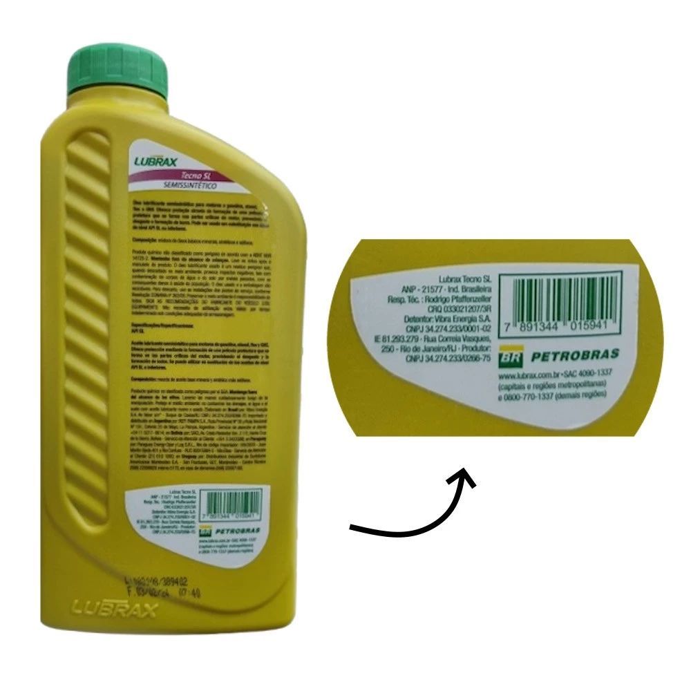 Óleo de Motor Lubrax semissintético 15W-40 p/carros gasolina, etanol, flex e GNV Kit de 4 unidades x 1L = 4L