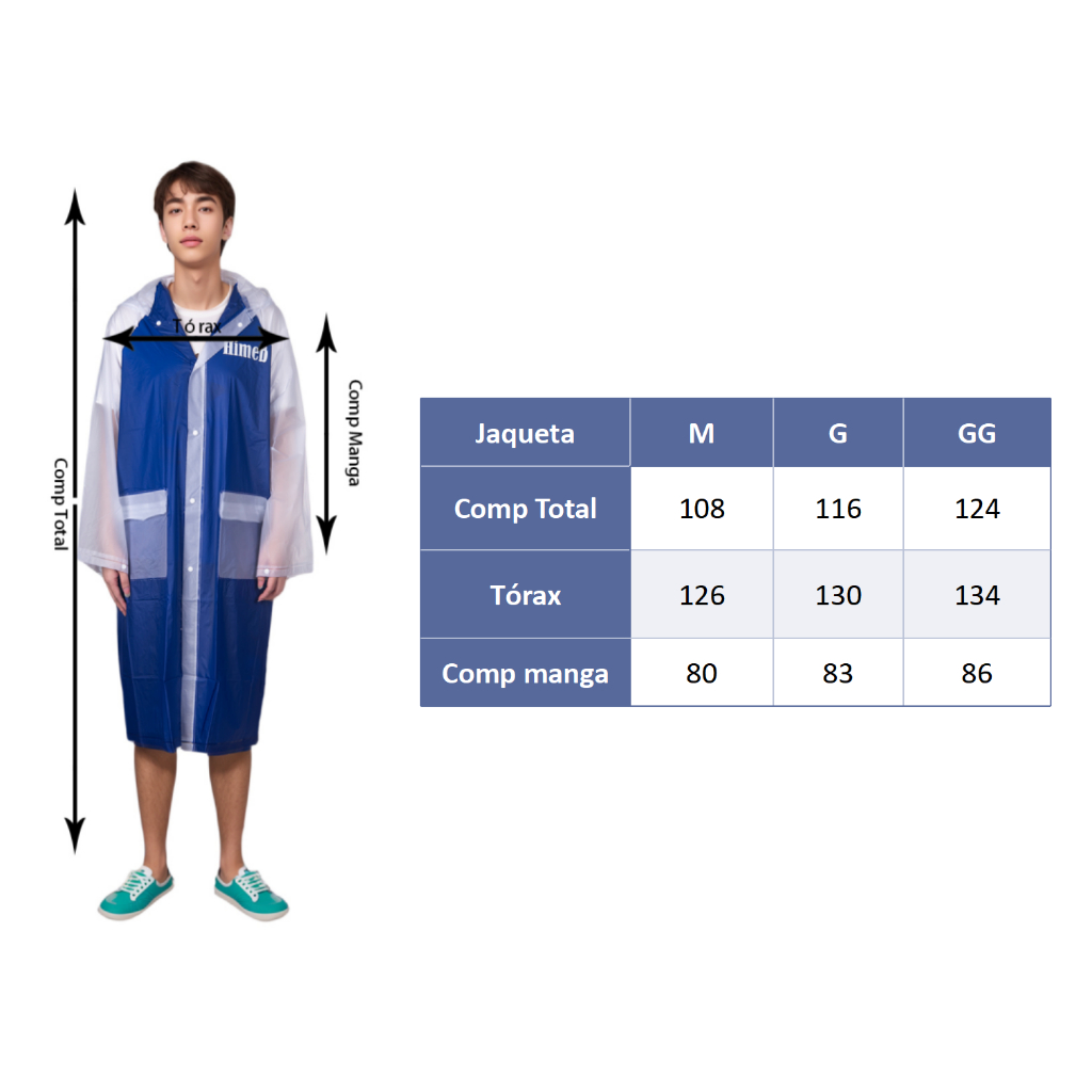 ⚡【PROMOÇÃO RELÂMPAGO】Capa de Chuva em Gabardina Grossa Transparente Reforçada Comprida e Reutilizável