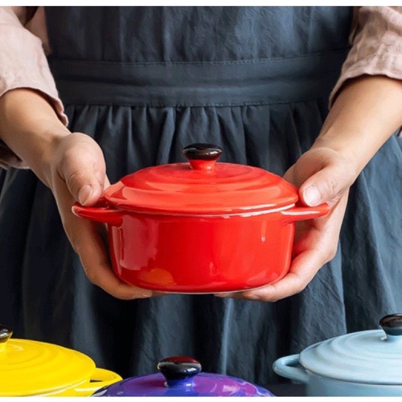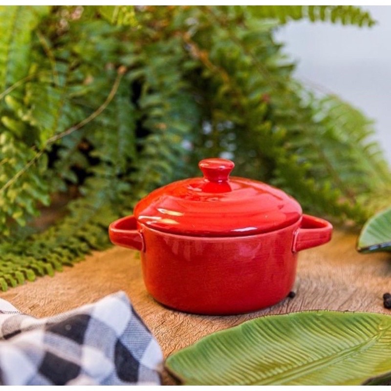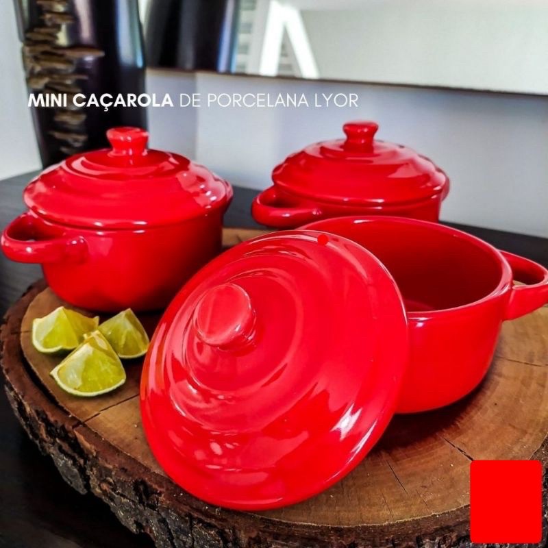 ✅ Mini Caçarola Porcelana Com Alça Lyor Vermelha