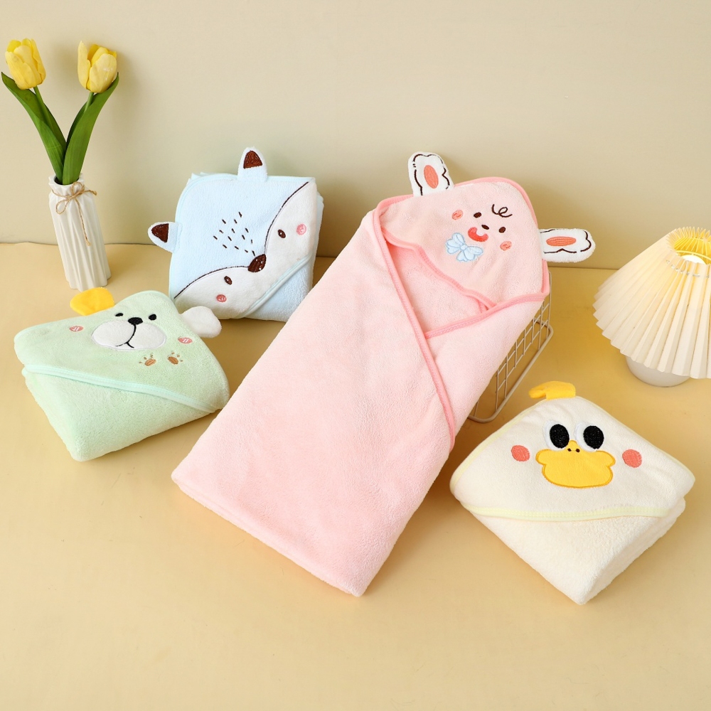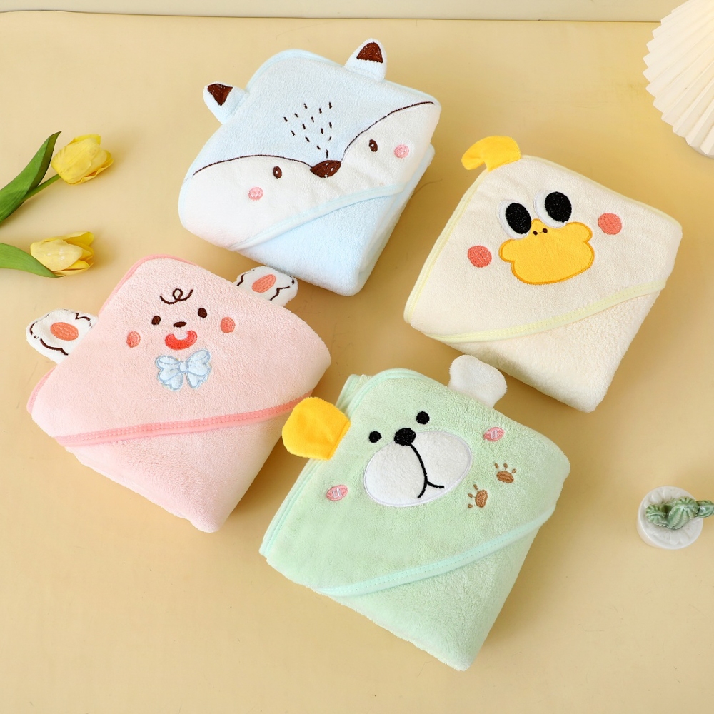 ✨【Novidades】Toalha De Banho Bebê Capuz Roupão Infantil Recém Nascido Criança Bichinho Bordado Absorvente 80 x 80cm
