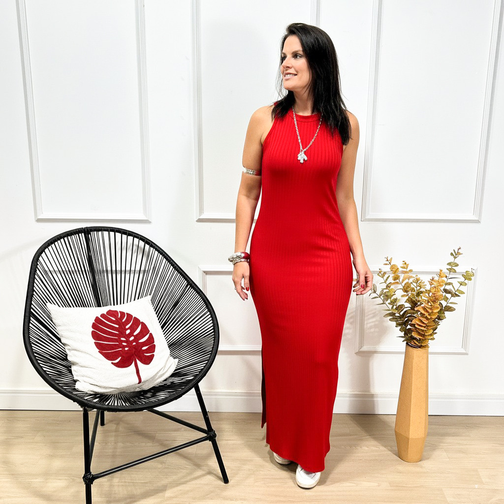 ✨ Vestido Longo em Malha Canelada – Elegância e Conforto que se Destacam!