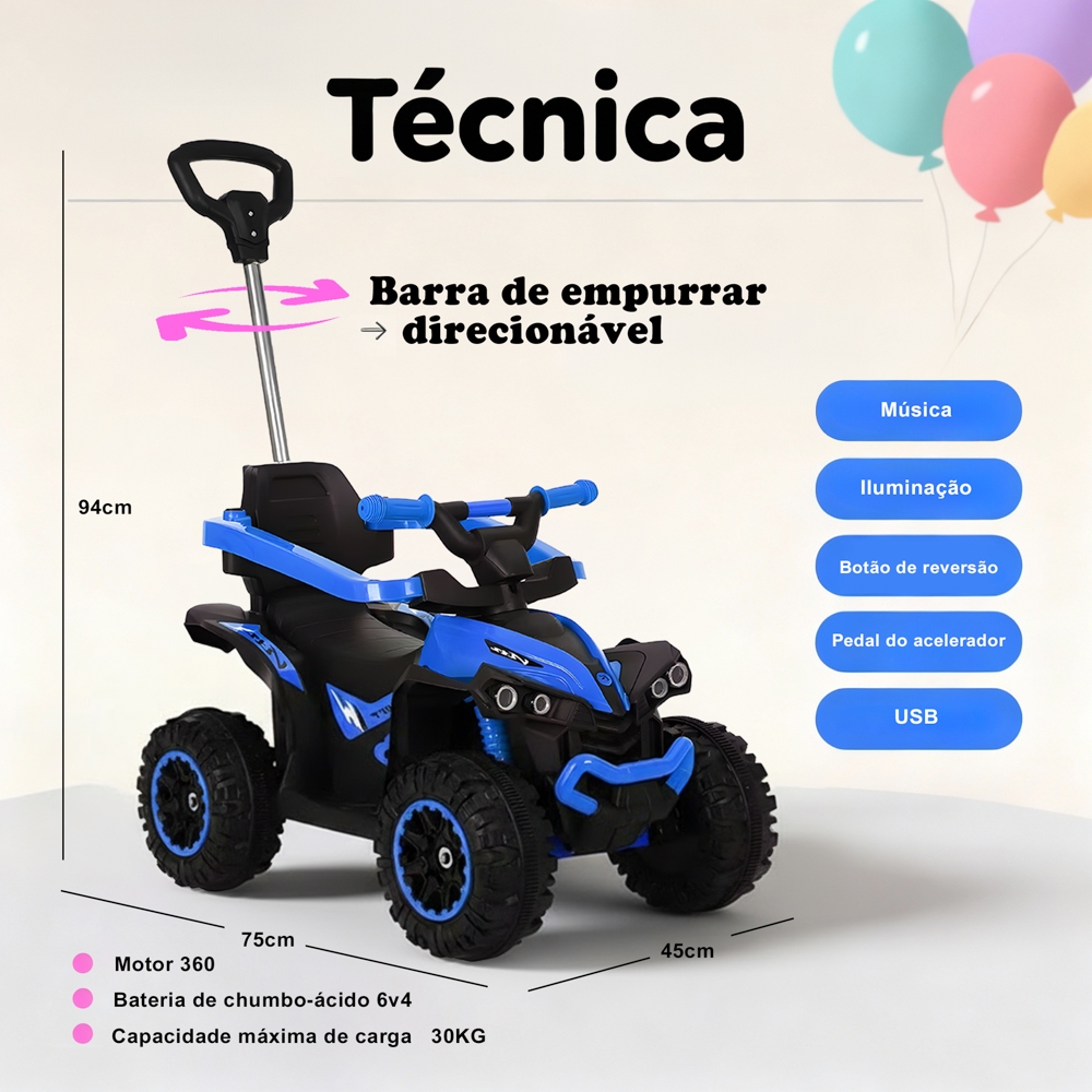 ✨Carro Carrinho Eletrico Infantil 6V Com Luzes USB Passeio Infantil 2 em 1 Empurrador Apoio dos Pés Menino e Menina