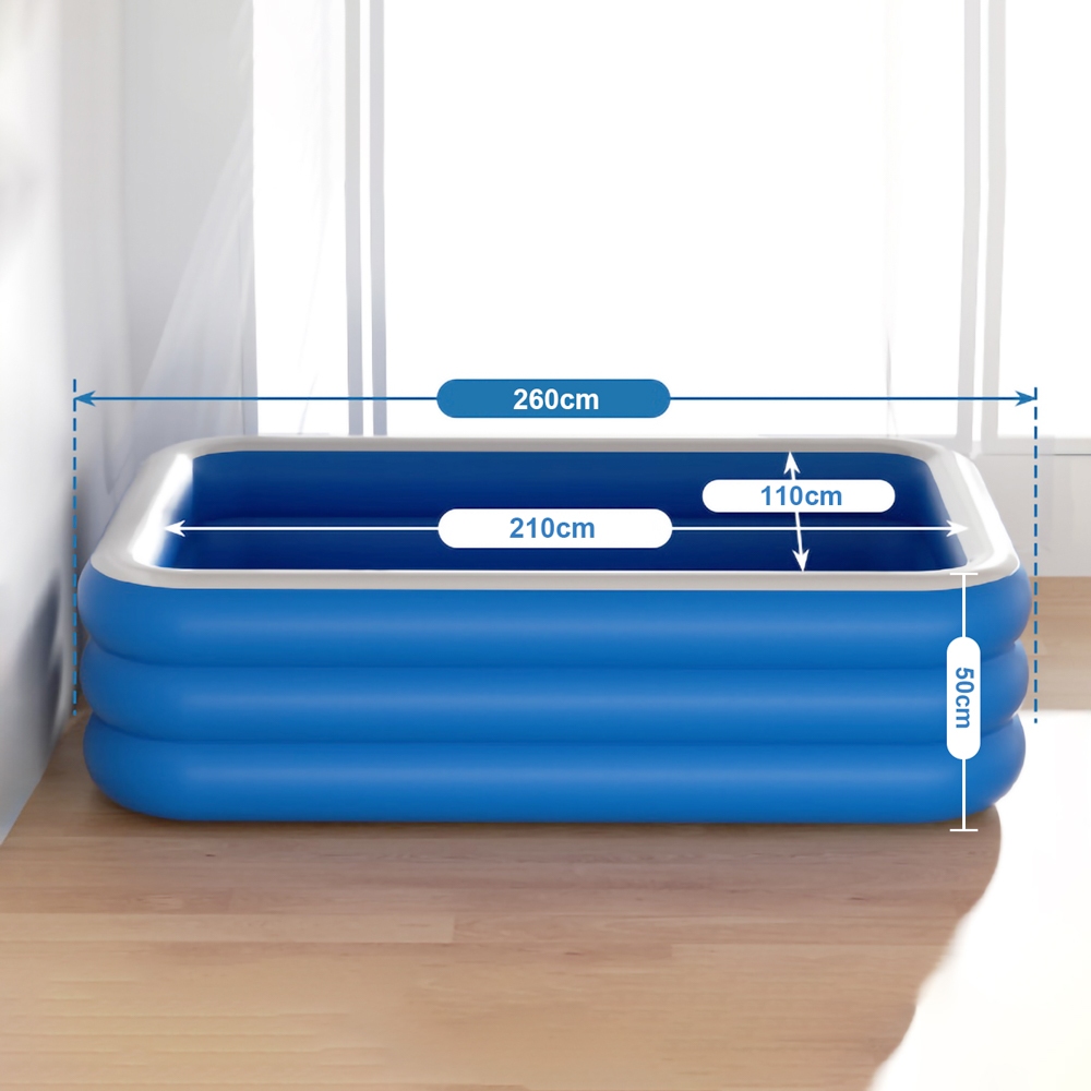 ✨Piscina Inflável Retangular Infantil 3 Anéis 2.6m Piscina Inflável Playground Swimming Pool Adulto Piscina Grande