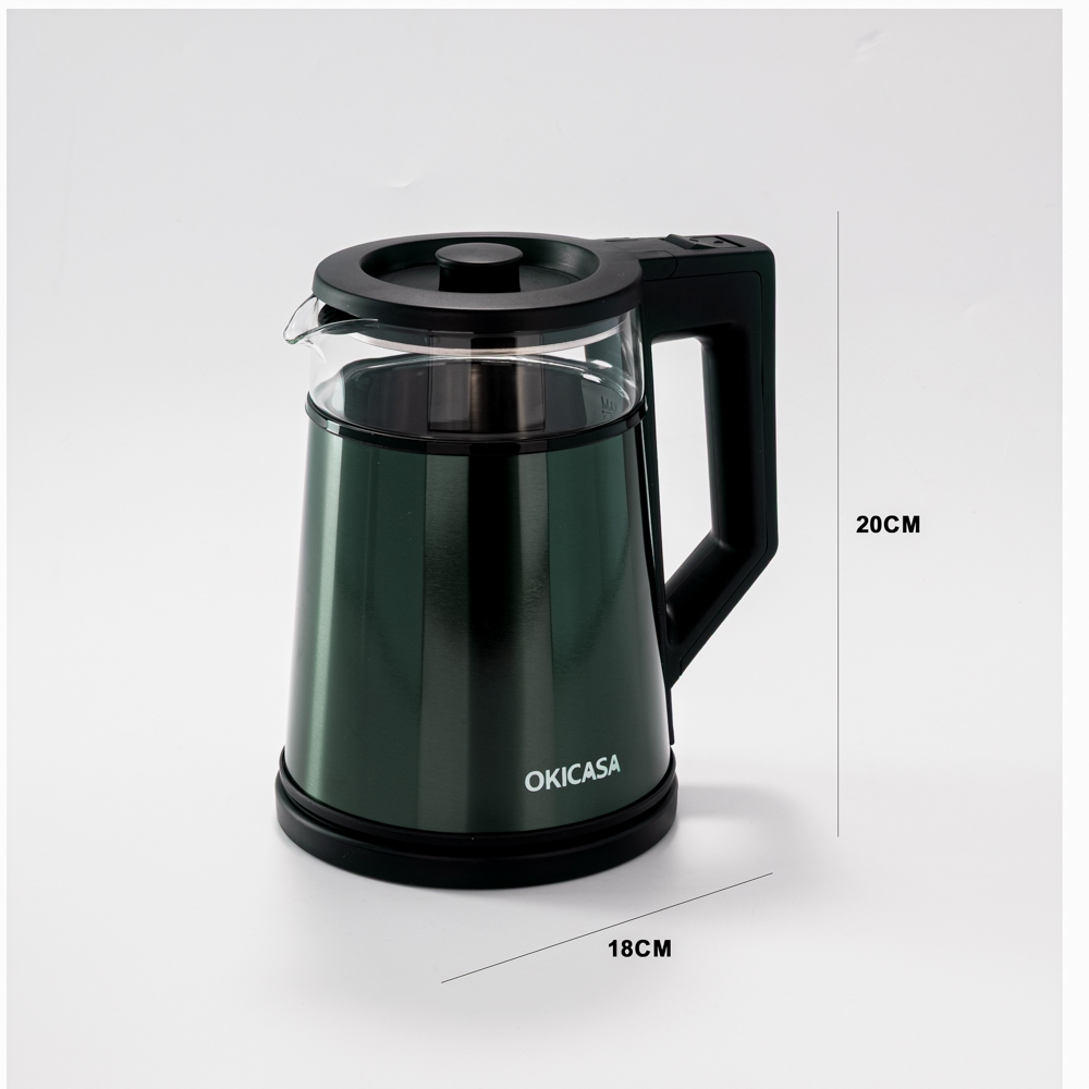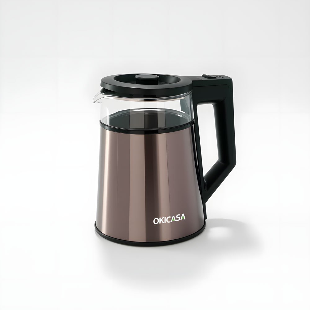 「OKICASA」Chaleira Elétrica Premium de Vidro 2L / Esterilização Profunda por Luz Azul / Água Mais Saudáve