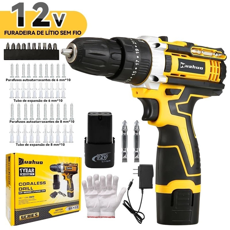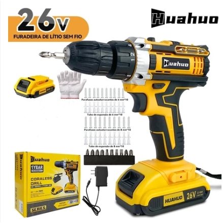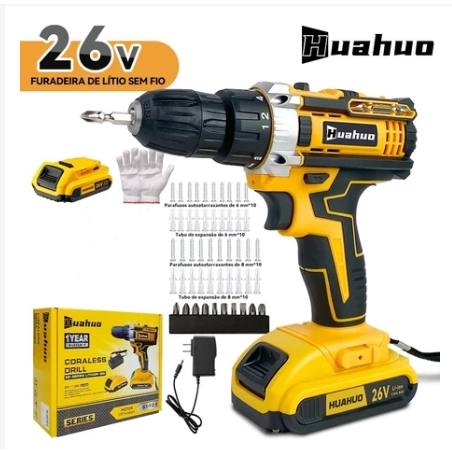 【110V/220V】26V Parafusadeira Furadeira Sem Fio Com Completo Acessórios Caixa de Papelão Bivolt.