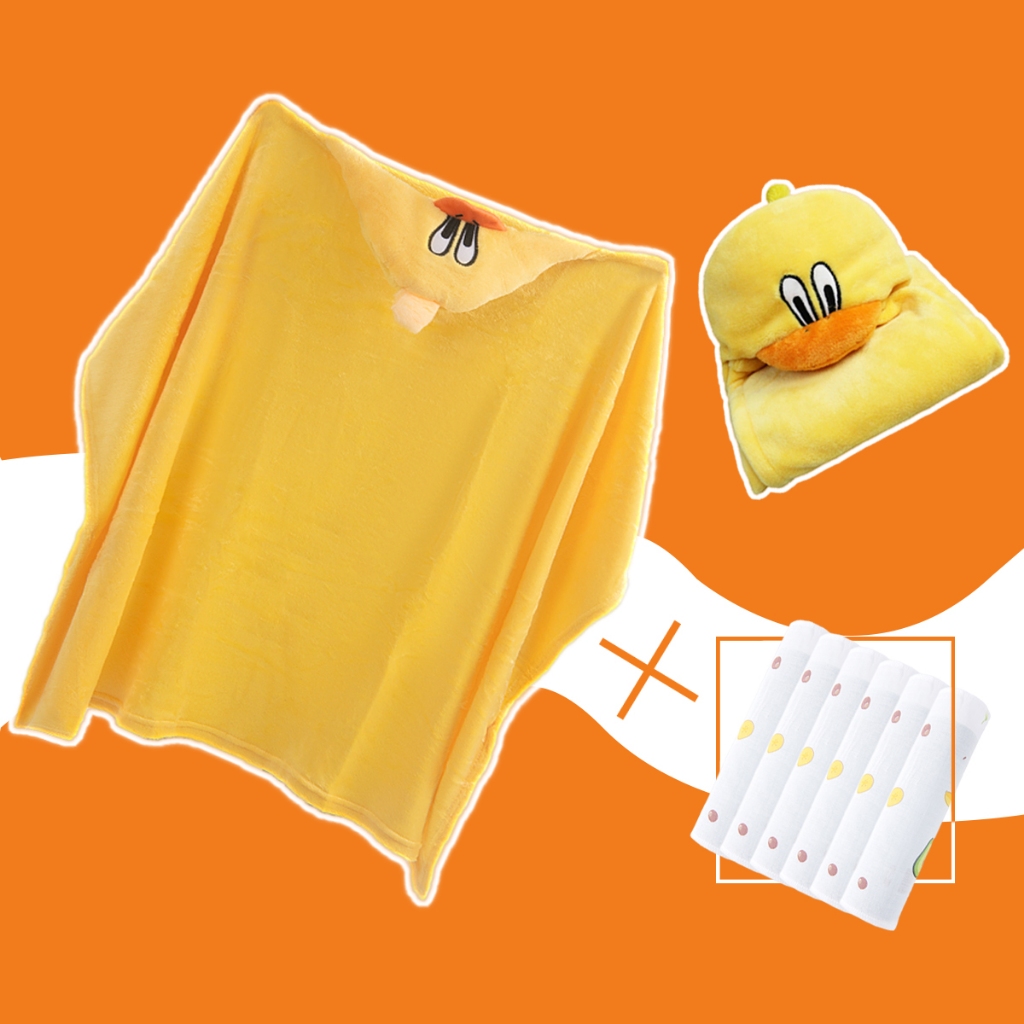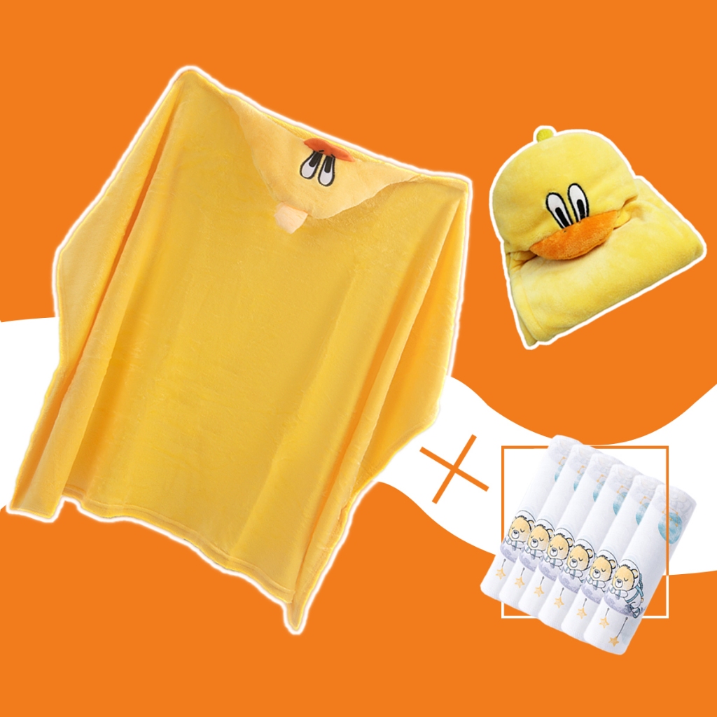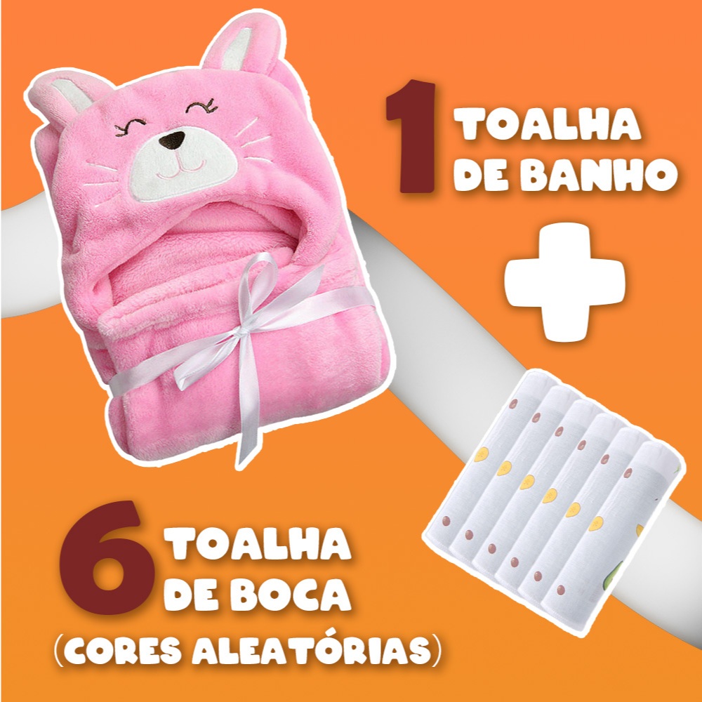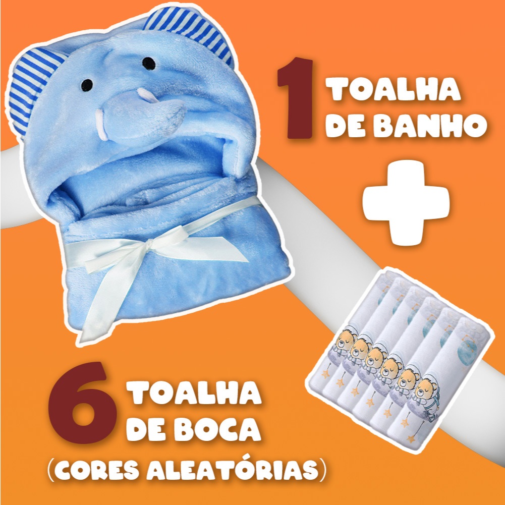 💓Toalha de Banho Bebê( Pode ser utilizado como cobertor)+ 6 Toalha de Babador Bebê 100% Algodão Estampada