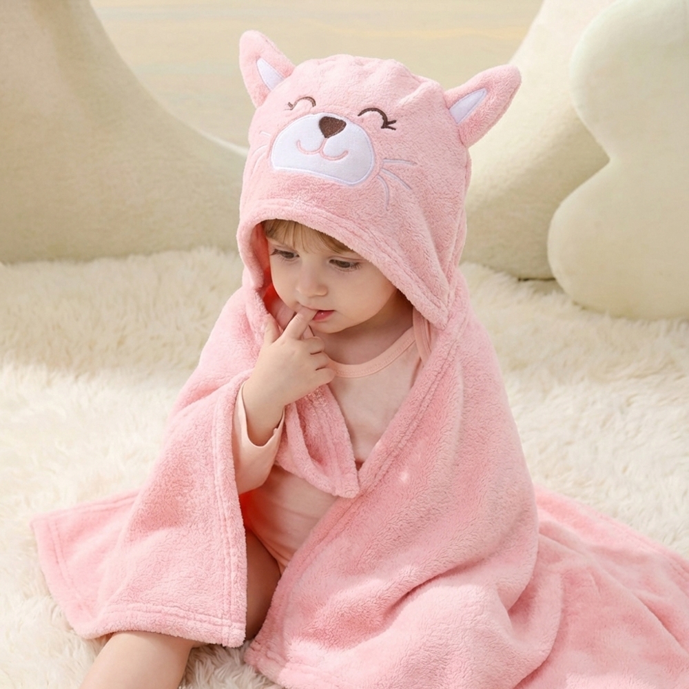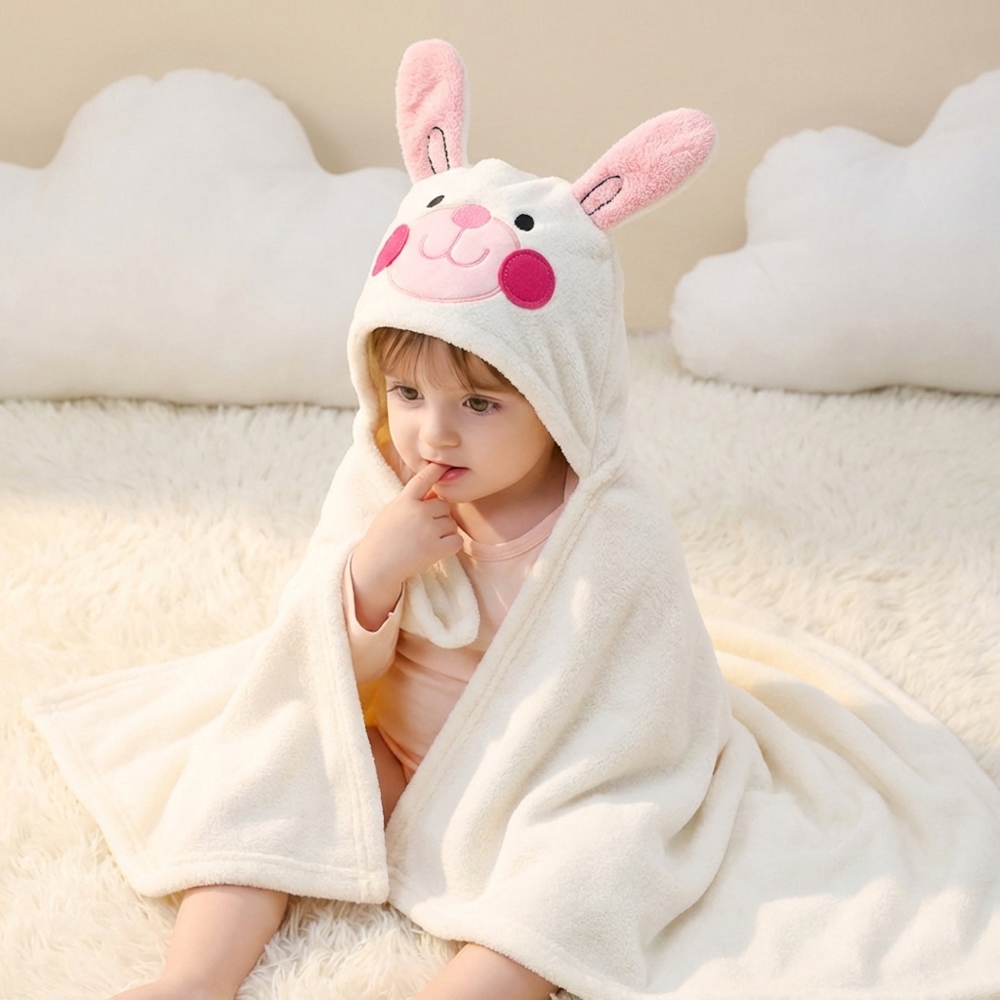 💓Toalha de Banho Bebê Cobertor de Bebê 95x65cm Felpuda Capuz Infantil Recém Nascido Com Orelhinha Menino e Menina
