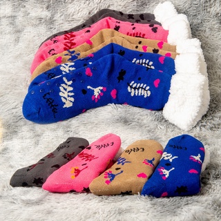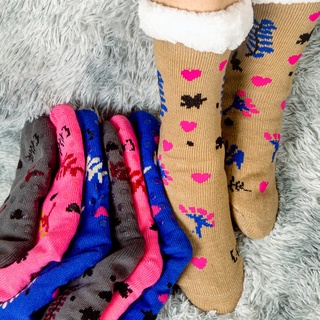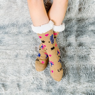 💗【Edição Especial de Natal】Meias De Casa Feminina Menina Quentes Térmicas Grossas Antiderrapante Com Forro Macio KW3349C