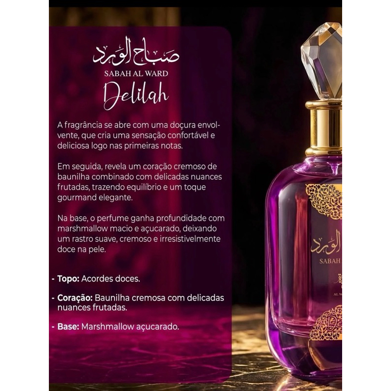 💜Perfume Árabe Sabah Al Ward Delilah Al Wataniah 100ml Feminino Floral Doce Lançamento 2026💜