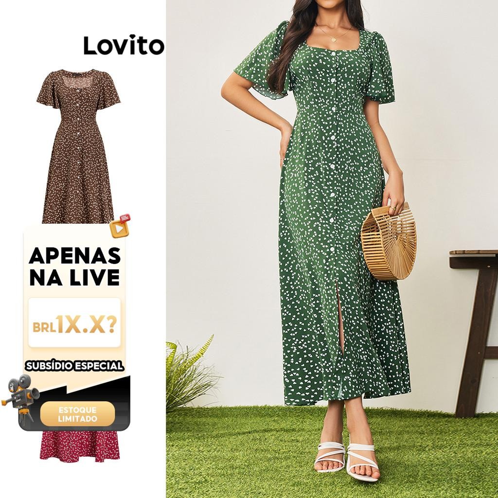 (LIVE STREAM SALE) Lovito Casual Vestido Feminino Floral com Zíper LBA05180 (Multicolorido)