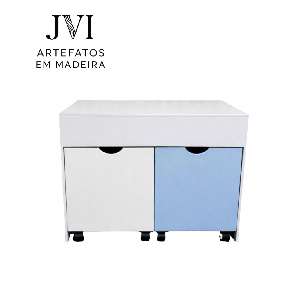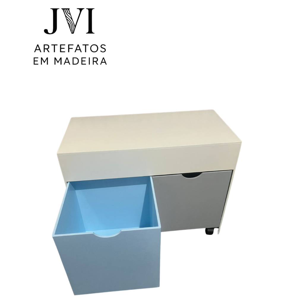 *NOVIDADE* Caixa Organizadora Infantil Azul e Cinza Com Gavetas em Mdf