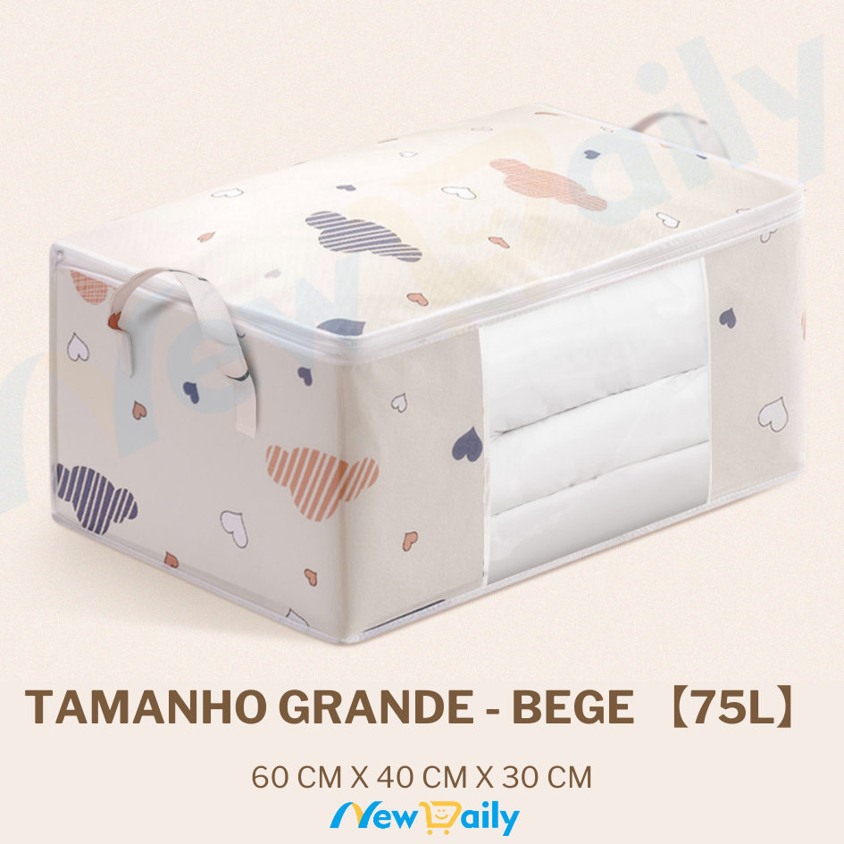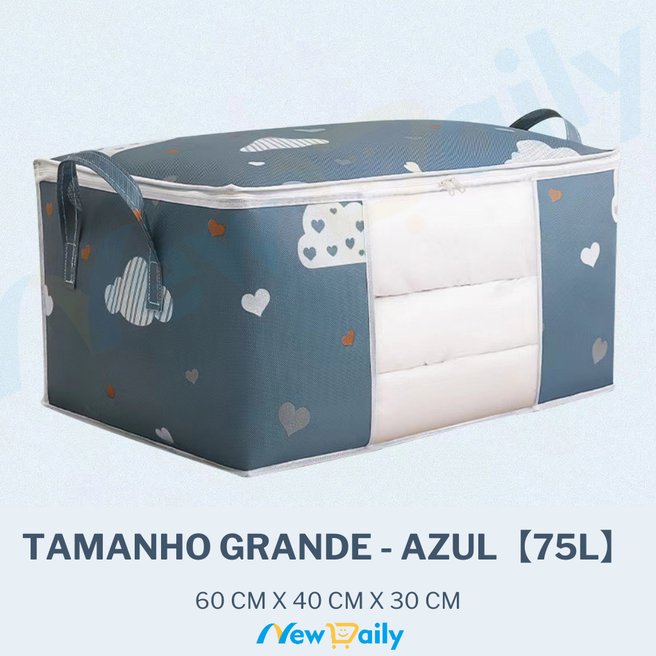 [75L] Caixa Saco Organizador Cobertor Casaco Guarda Roupa Ecológico Anti-Poeira Umidade Insetos Multiuso. OG-121-BC
