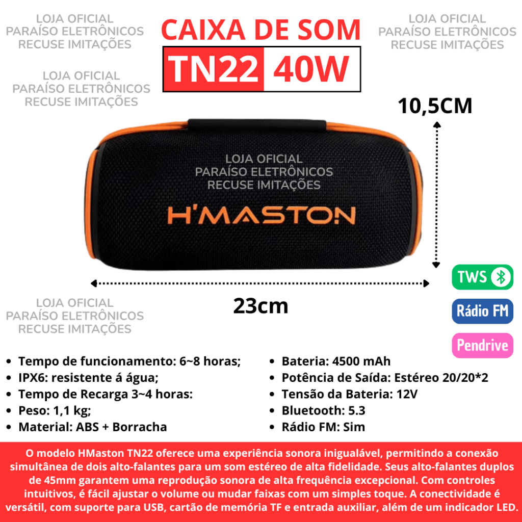 [ORIGINAL] CAIXA DE SOM ALTO FALANTE GRAVE POTENTE IPX6 Bluetooth Portátil HMASTON 20W/40W/60W/80W
