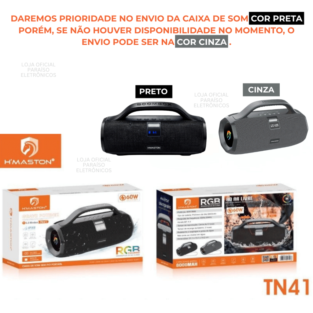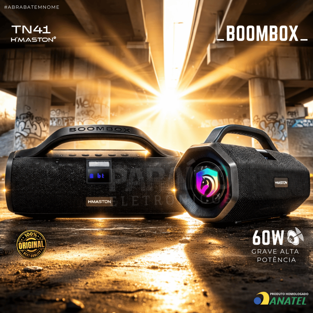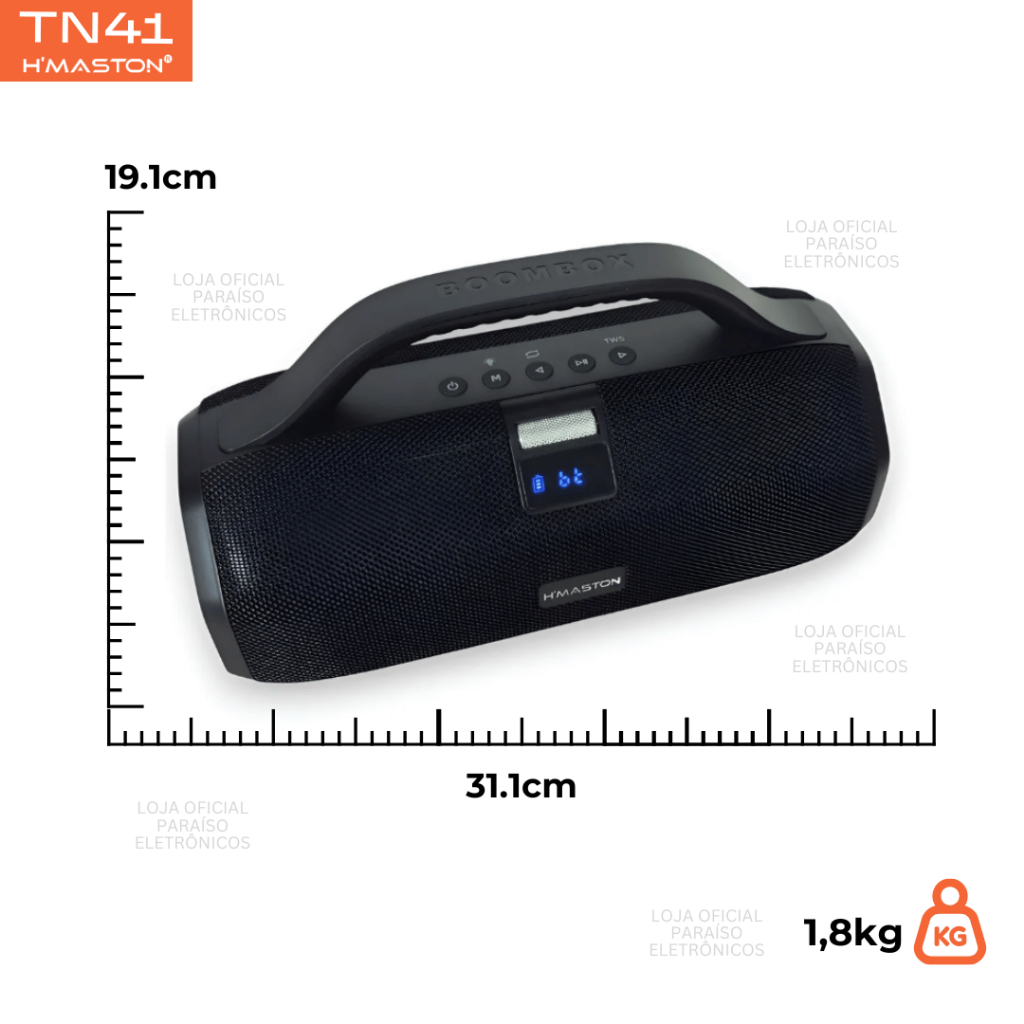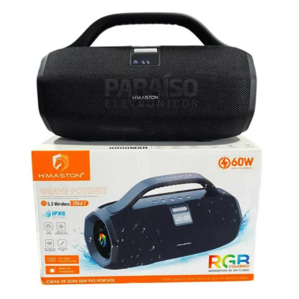 [ORIGINAL] Caixa de Som BOOMBOX TN41 60W Grave ALTA POTÊNCIA Bluetooth Subwoofer IPX6 TWS HMaston