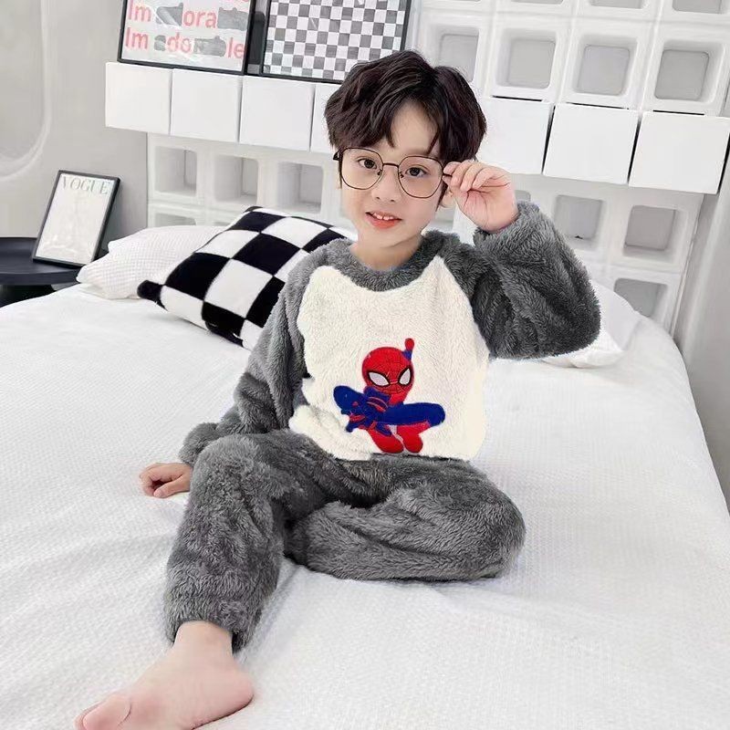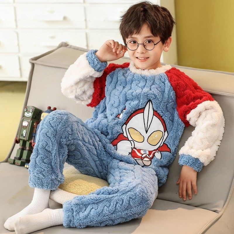 - Pijama Masculino De Inverno Infantil Menino Flanela Grossa Manga Comprida Quente 2 Peças Terno Do Miúdo 3-1