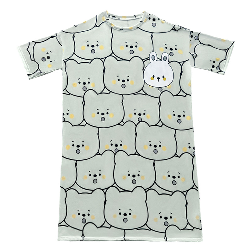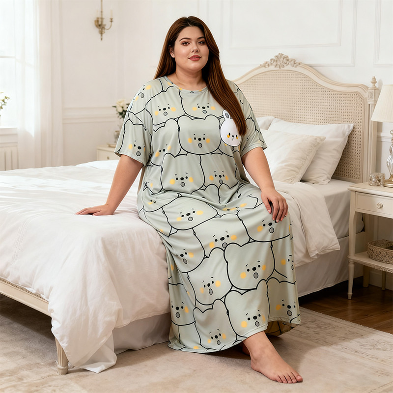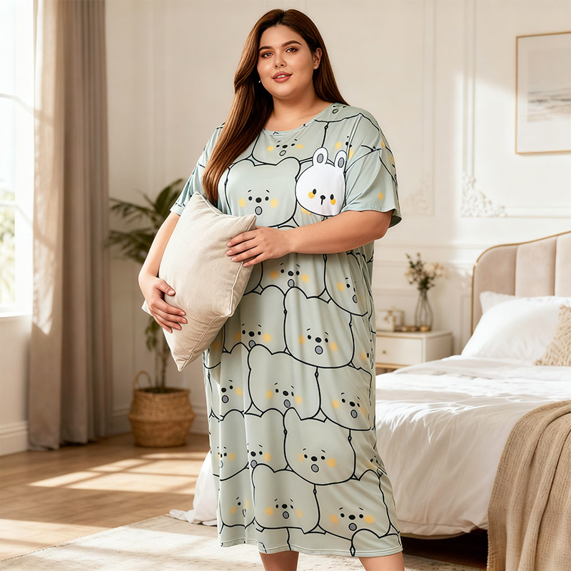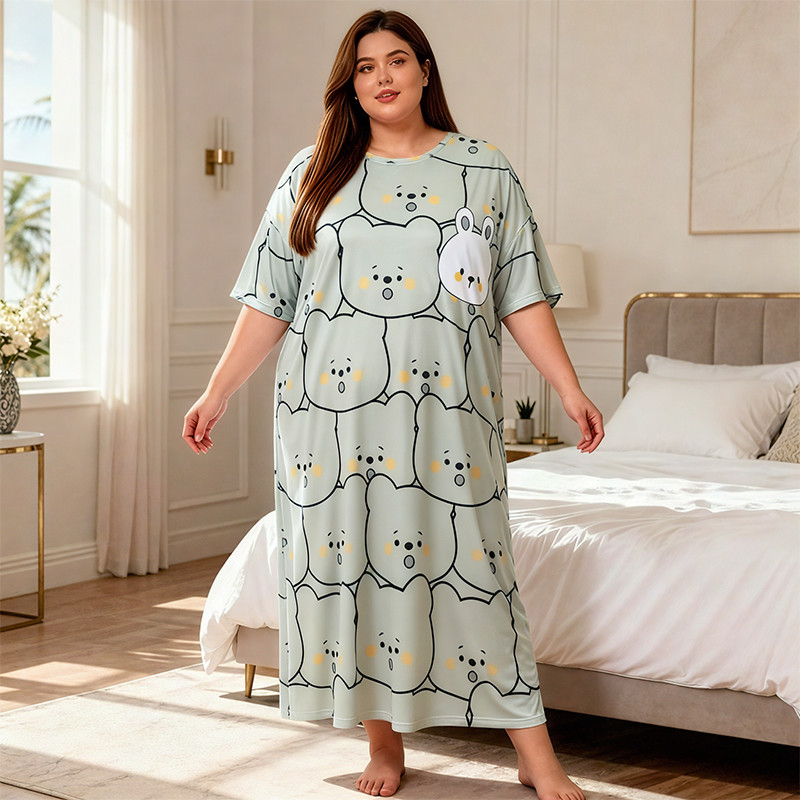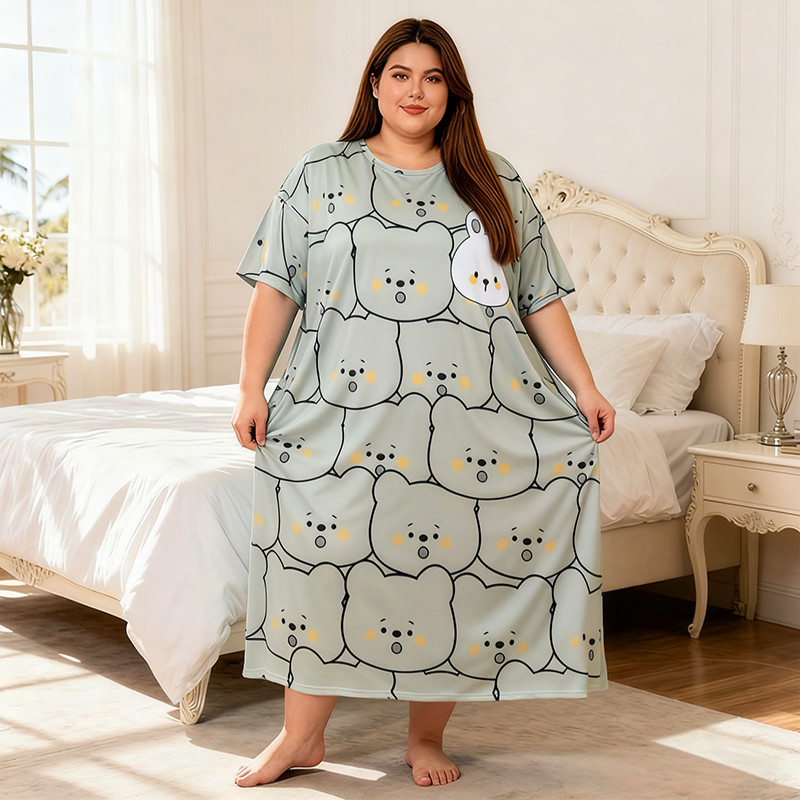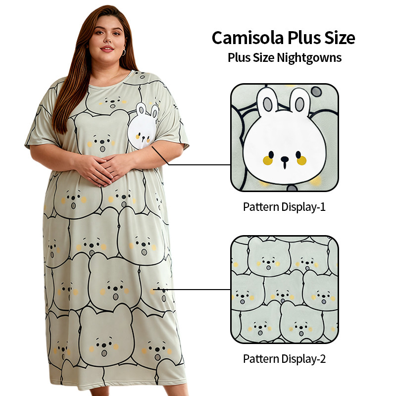 [Pijama Oversize] Mulheres Plus Size Bonito Desenho Animado Pijamas Verão Manga Curta Homewear Rosto Grande Padrão De Ur