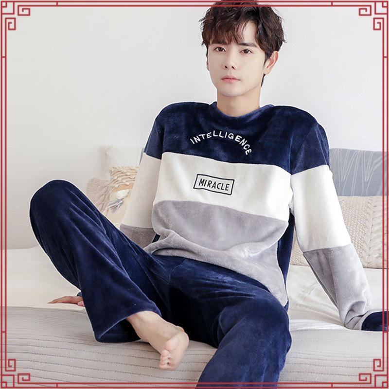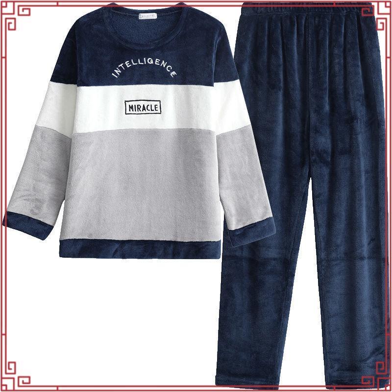 [Pijamas De Veludo De Coral De Outono E Inverno Masculino De Flanela Espessada Fato De Primavera