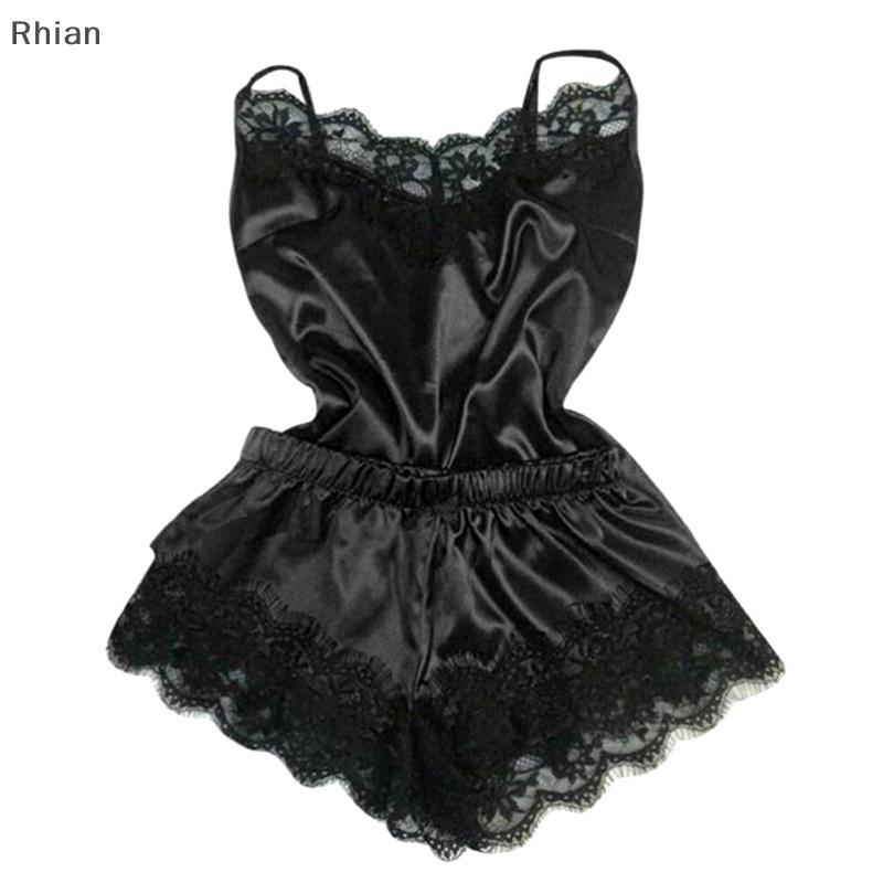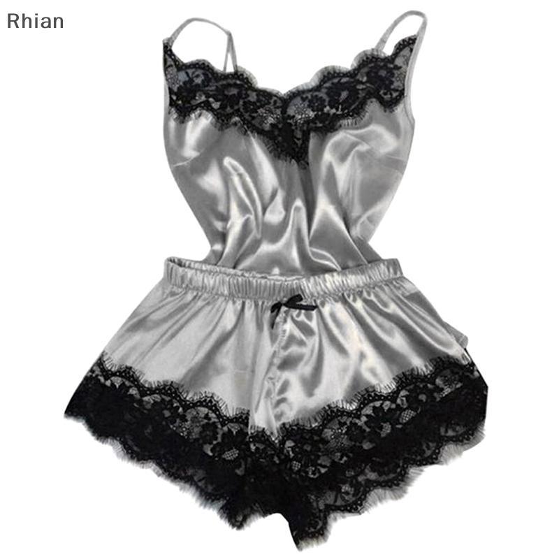[Rhian] Conjunto De Pijama Feminino Sem Mangas Com Alça E Acabamento Em Renda Cetim Cami Top COD