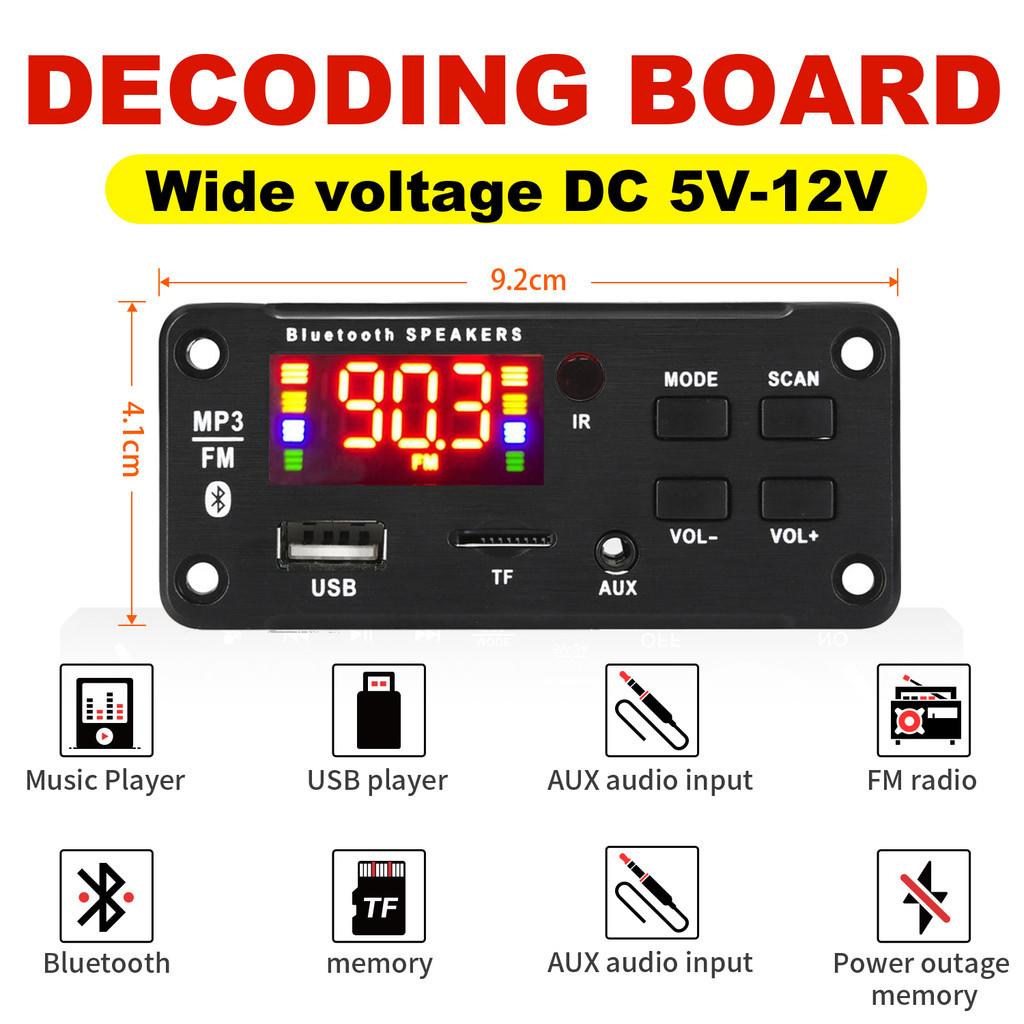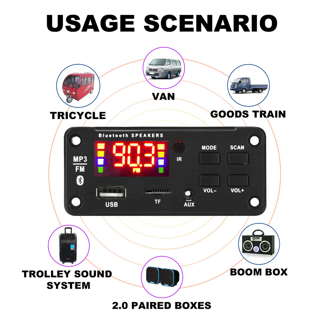[Shopee Choice] DC 12V Sem Fio Bluetooth 5.0 Placa mp3 Módulo De Áudio Estéreo HiFi USB TF Rádio mp3 player Para Gravaçã