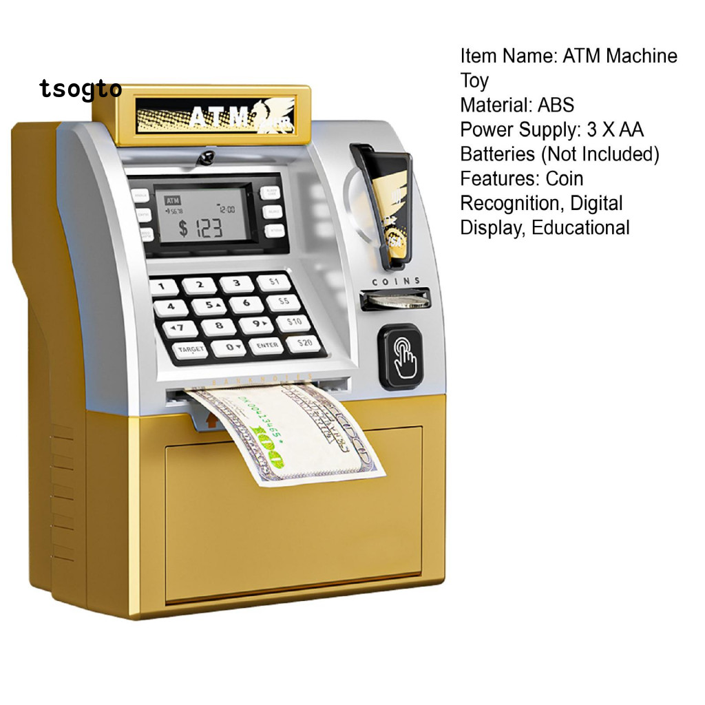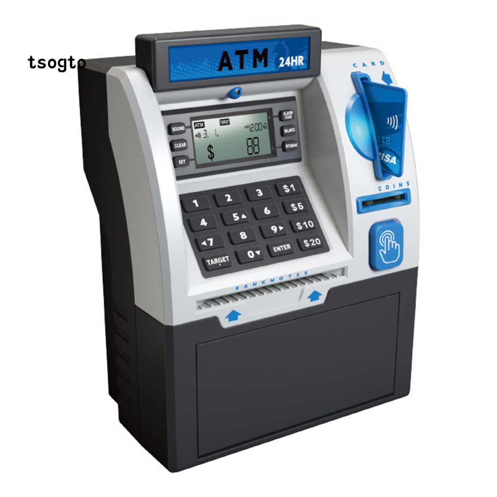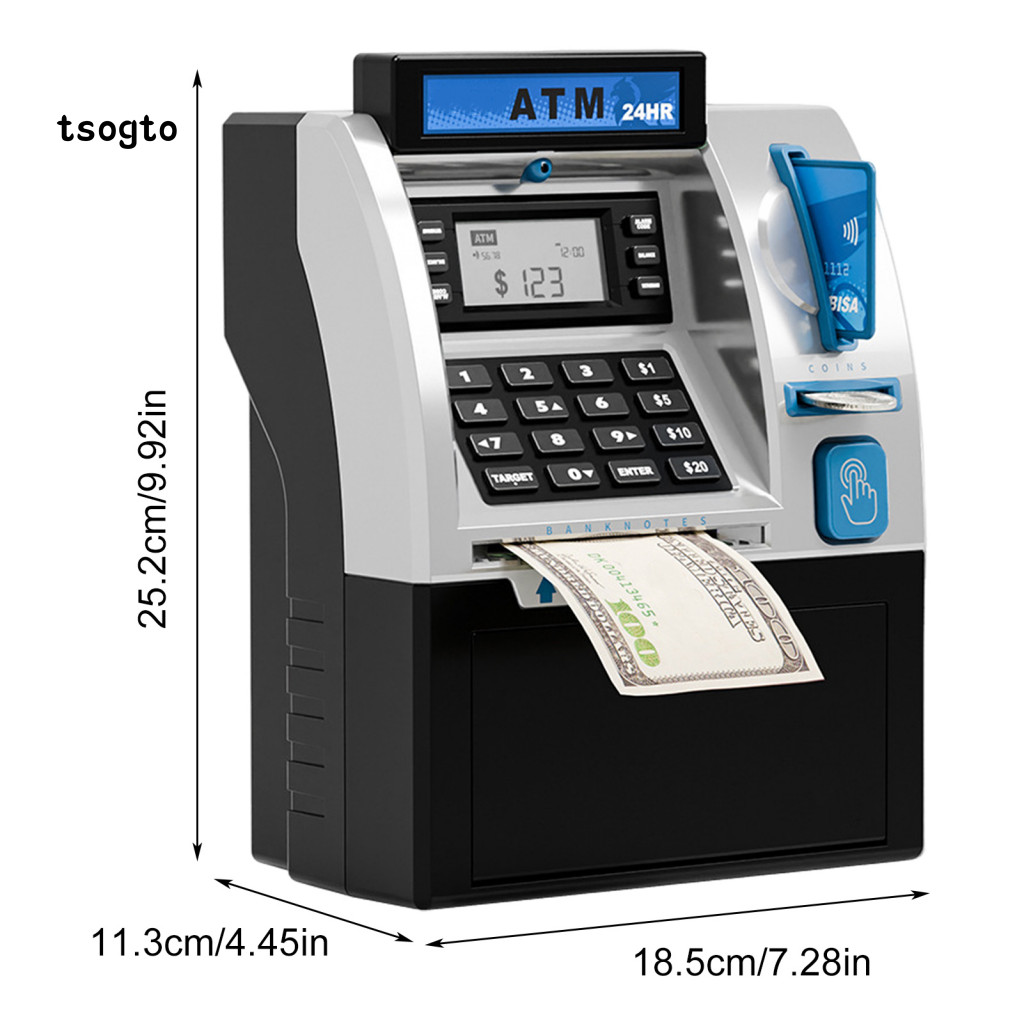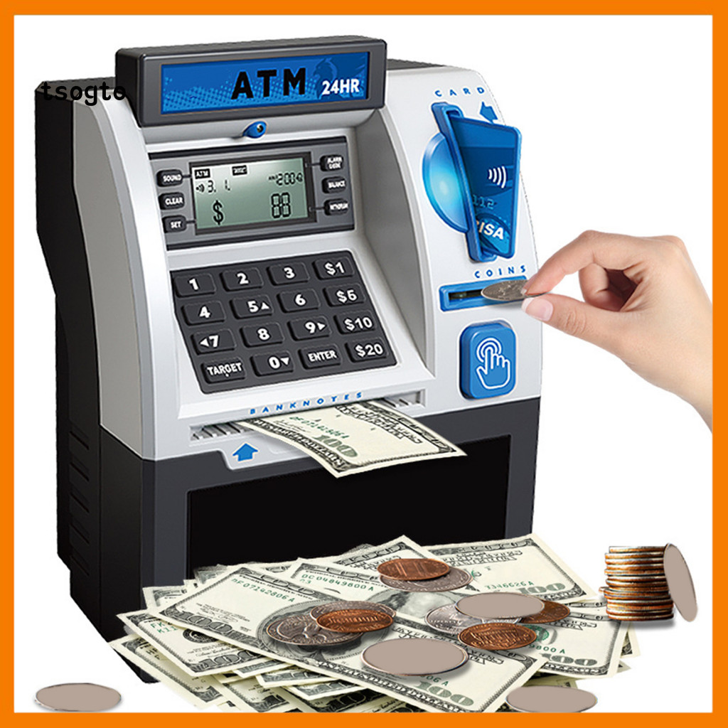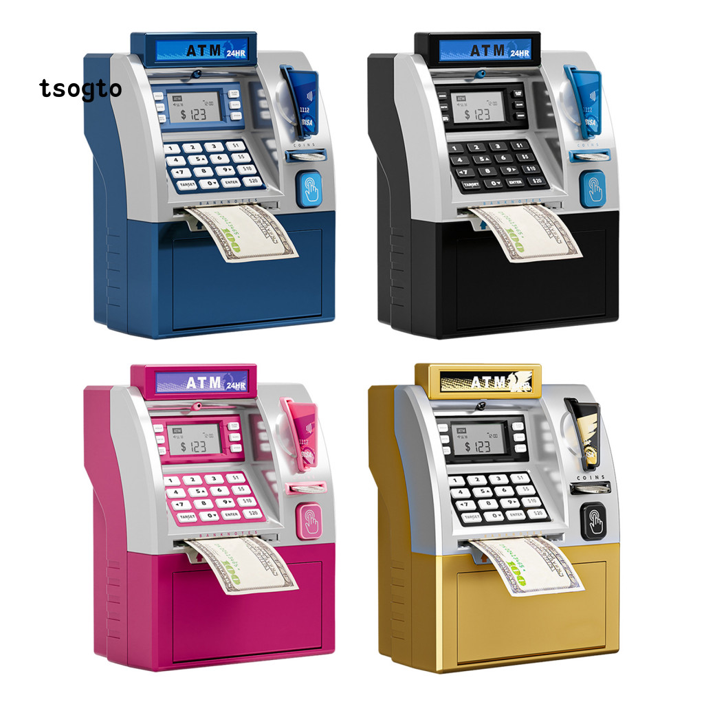 [TS] Kids Atm Machine Toy Playset Piggy Bank Com Cartão-Senha Eletrônica Banco Para Economizar Moedas Caixa De Dinheiro