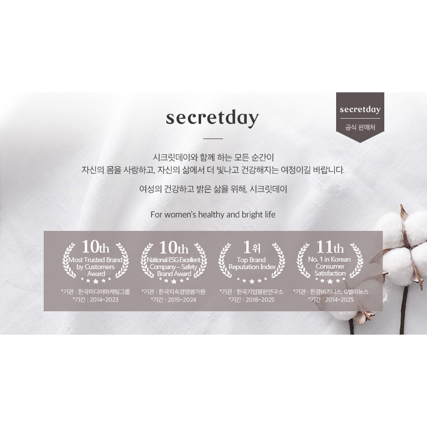 [secretday] Absorvente Higiênico Da Marca No 1 Coreia | Absorção Seca Perfeita Folha Superior De Cetim Forros Longos 8 P
