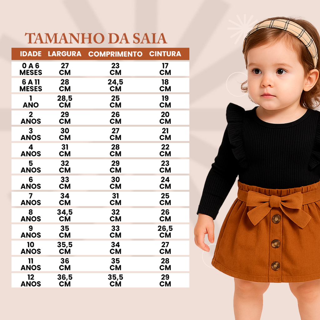 6 -11 Meses até 16 Anos - Moda Infantil Blogueirinha - Roupa Estilosa para Menina - Conjunto de Saia Blusa 10 12 14 ANOS