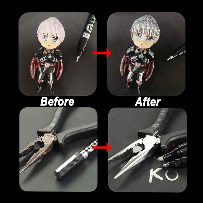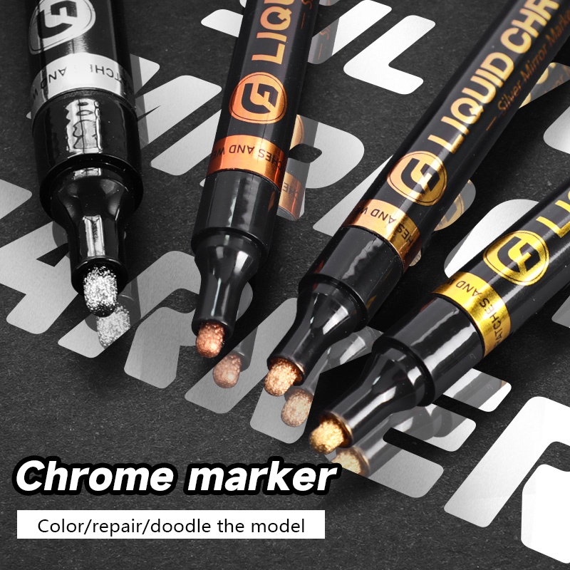 0.7mm/1mm/2mm/3mm Caneta Cromada Marcador Espelho Reparo De Tinta À Prova D'água Para Cartões Modelo Pôsteres
