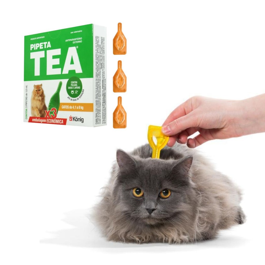 03 Antipulgas TEA Gatos Pipeta X3 unid 4,1 até 8KG 1ML Konig