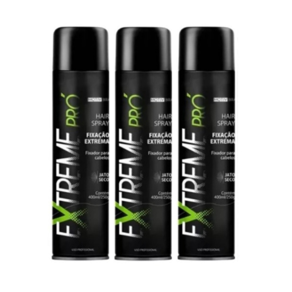 03 Laque Spray Fixador Extreme Extra Forte Pro 400ml.