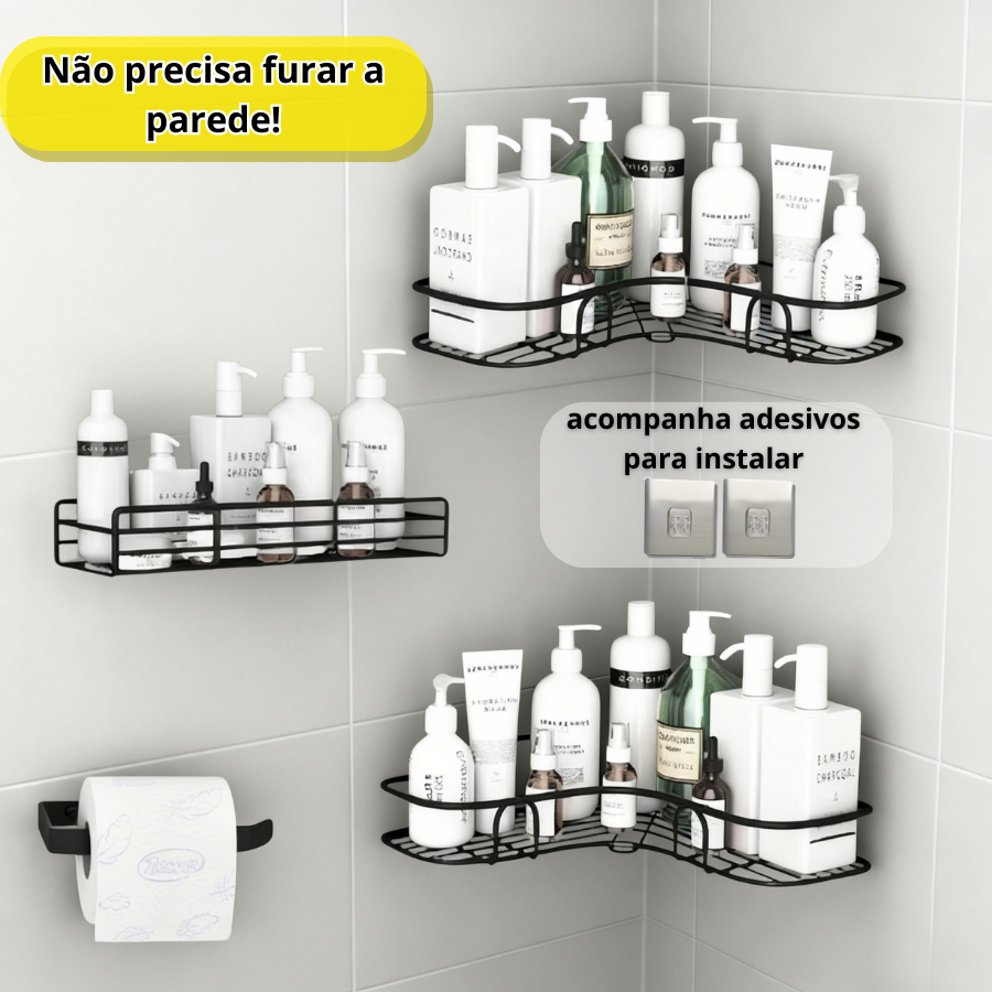 1/2/4 Prateleiras Organizadoras de Metal para Parede Banheiro Cozinha Porta Shampoo