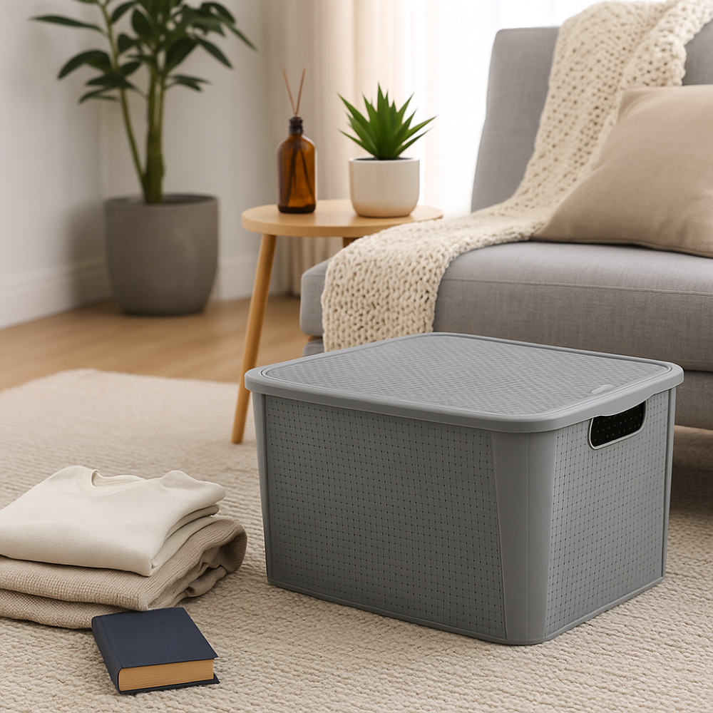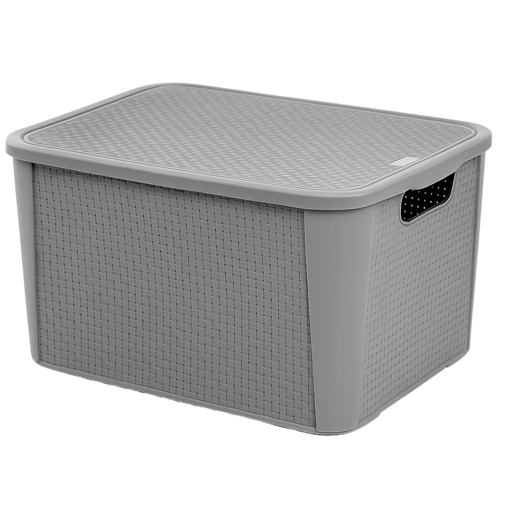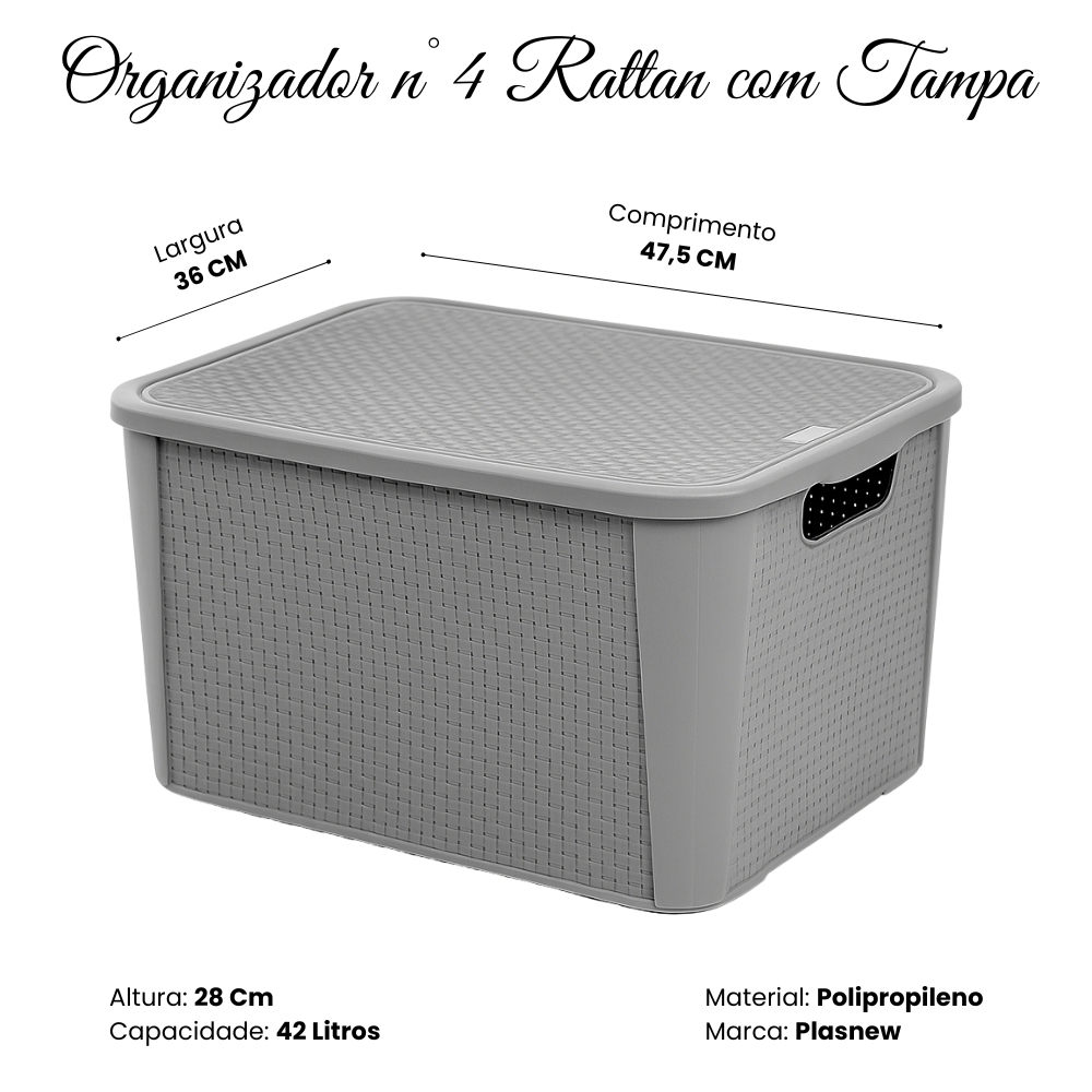 1 Organizador Rattan 42L Cinza Multiuso com Tampa P2076