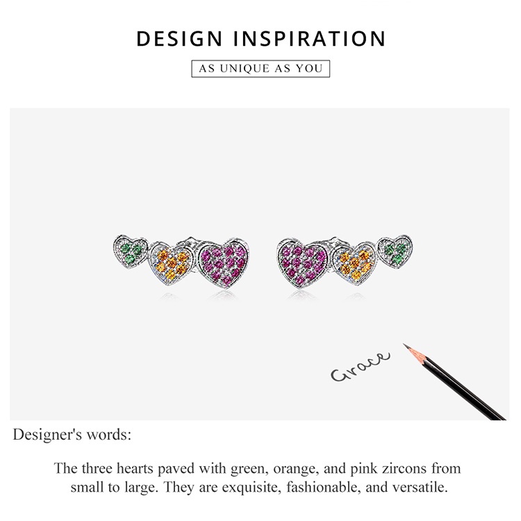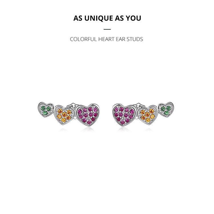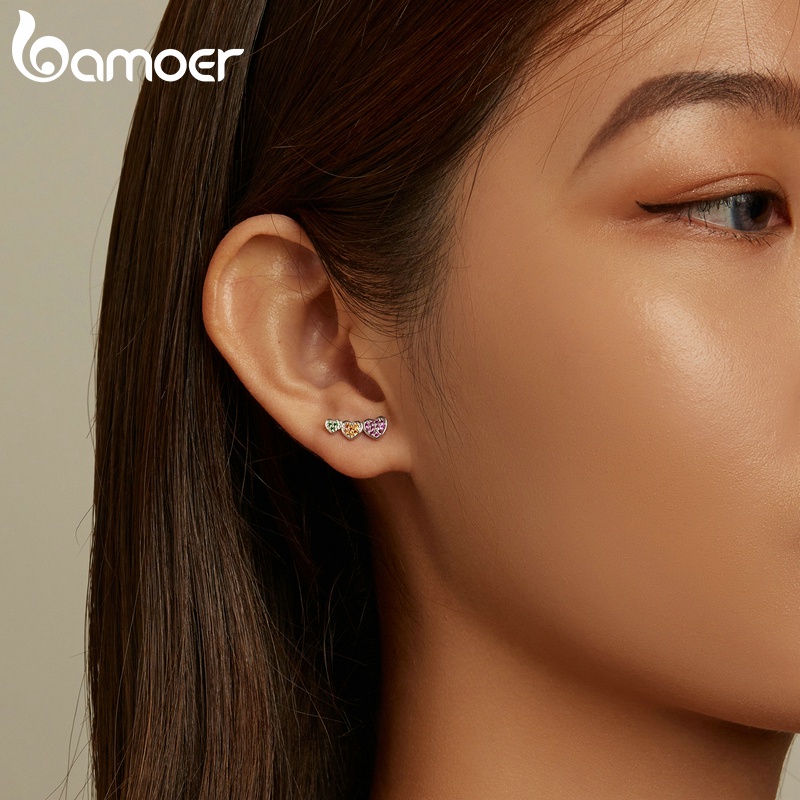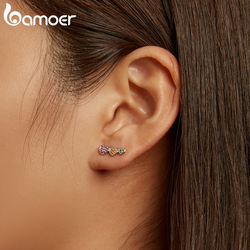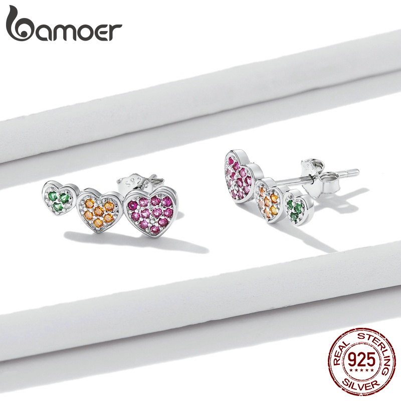 1 Par Brinco De Tarraxa De Prata Bamoer 925 Colorido Com Coração BSE588