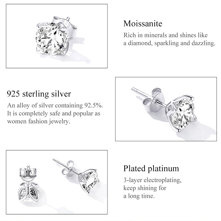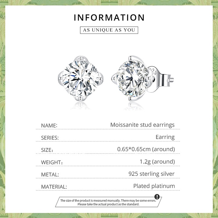 1 Par Brinco Feminino De Prata Moissanite Bamoer 925/Bijuteria Fashion Para Mulheres/Meninas