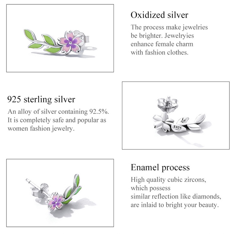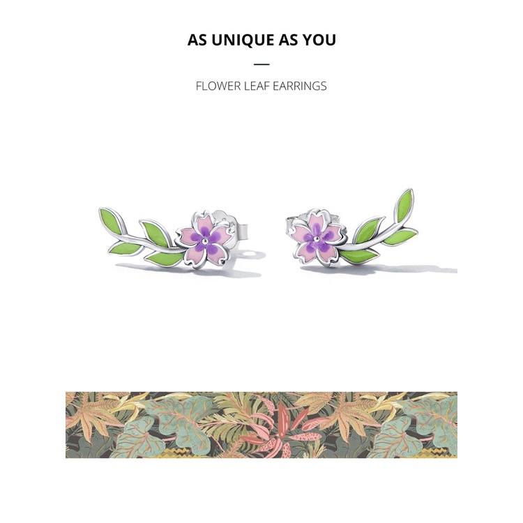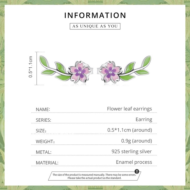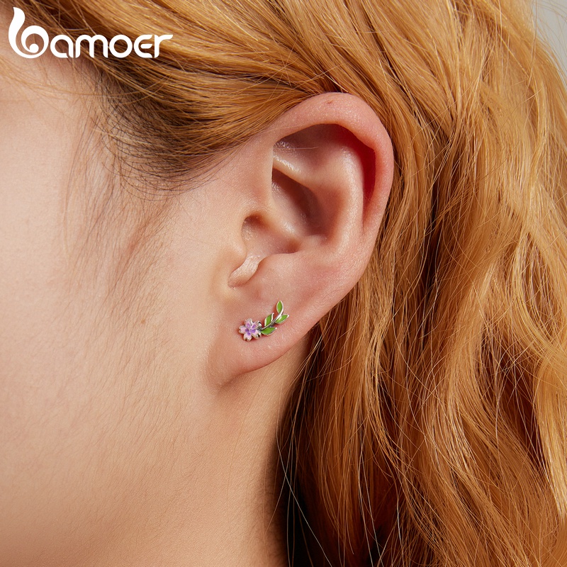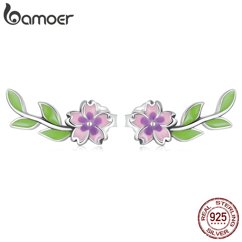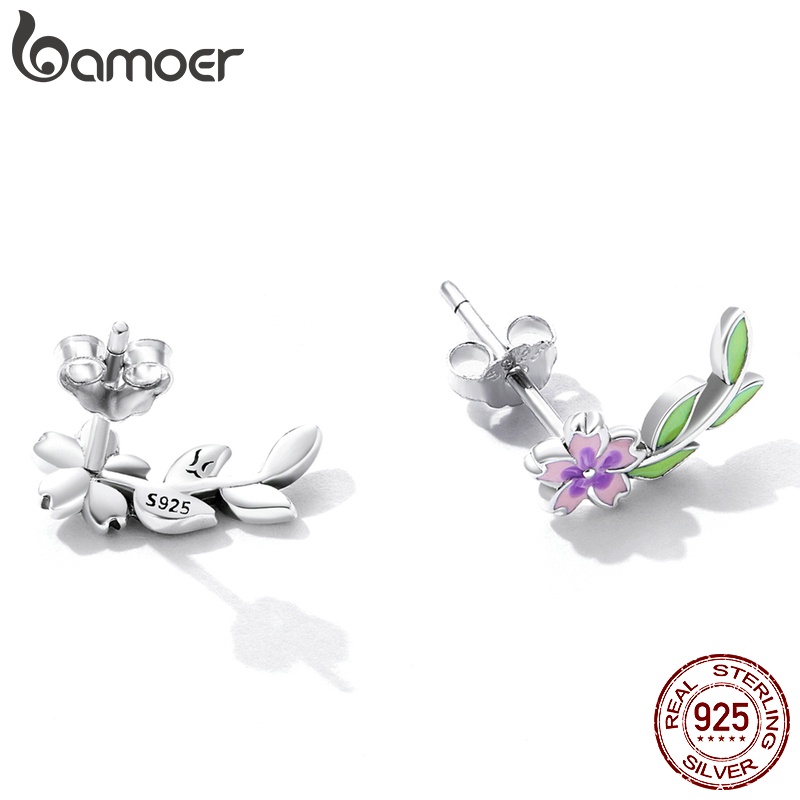 1 Par De Brinco De Tarraxa De Prata Bamoer 925 Com Flor/Folha Verde Para Mulheres/Presente SCE1391