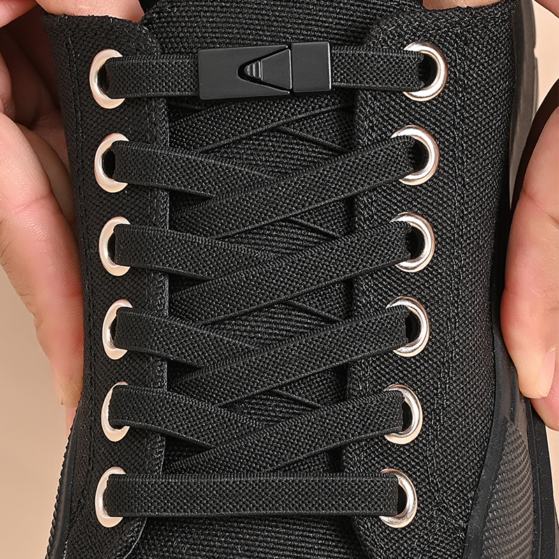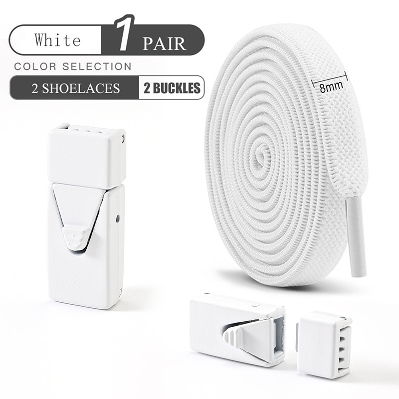 1 Par De Cadarços Elásticos Sem Amarração Com Fivelas De Interruptor-De 8 Mm De Largura Para Tênis E Sapatos Casuais