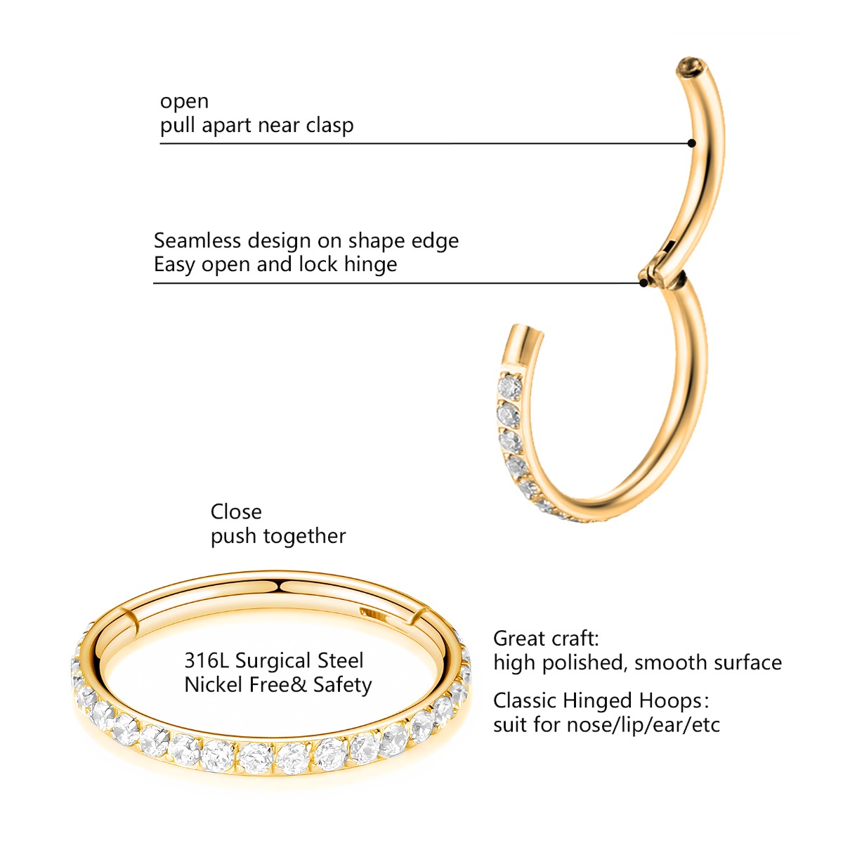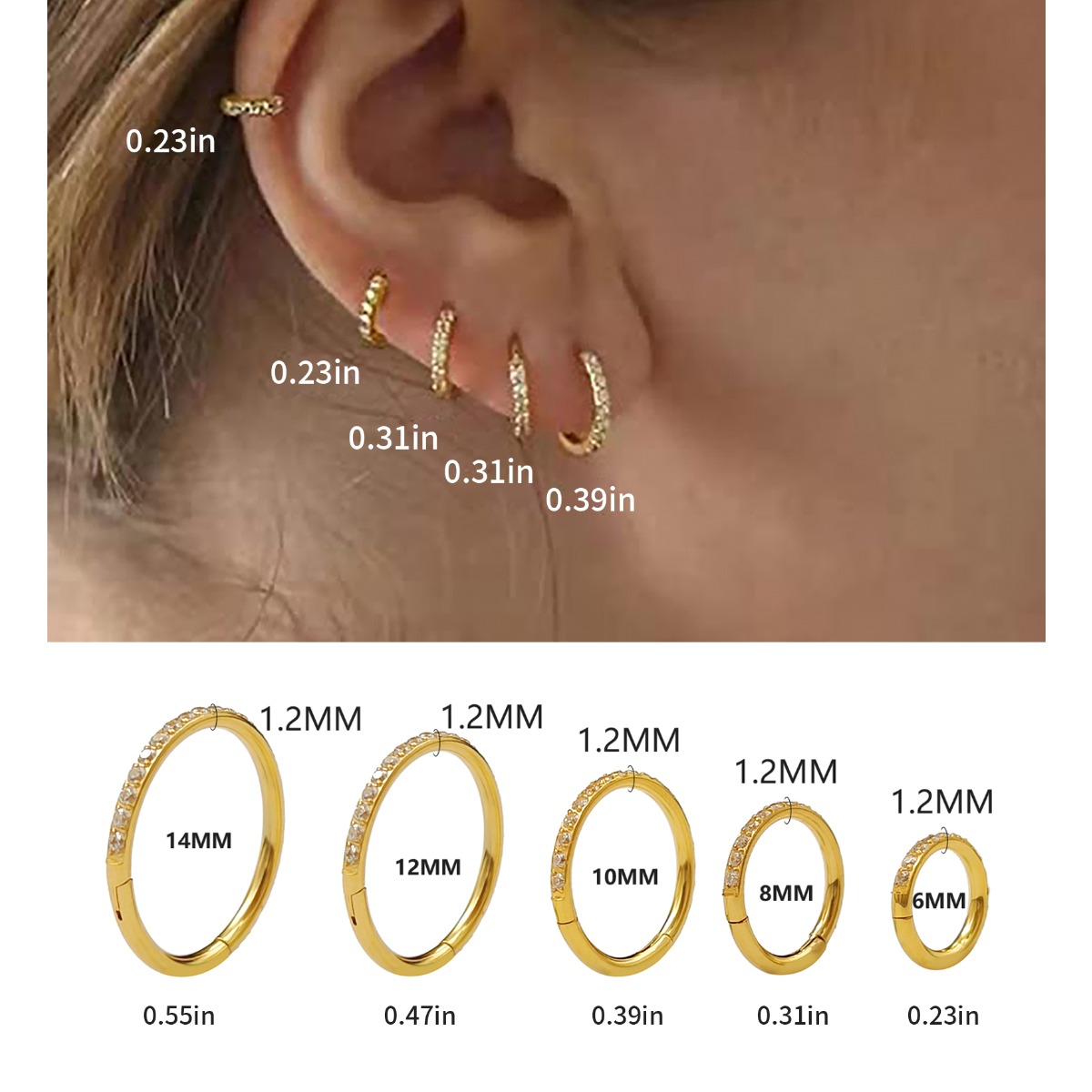 1 peça de piercing de argola com zircônia em titânio 1.2*8mm para Septil, Rook, Conch, Nariz Marina Culture