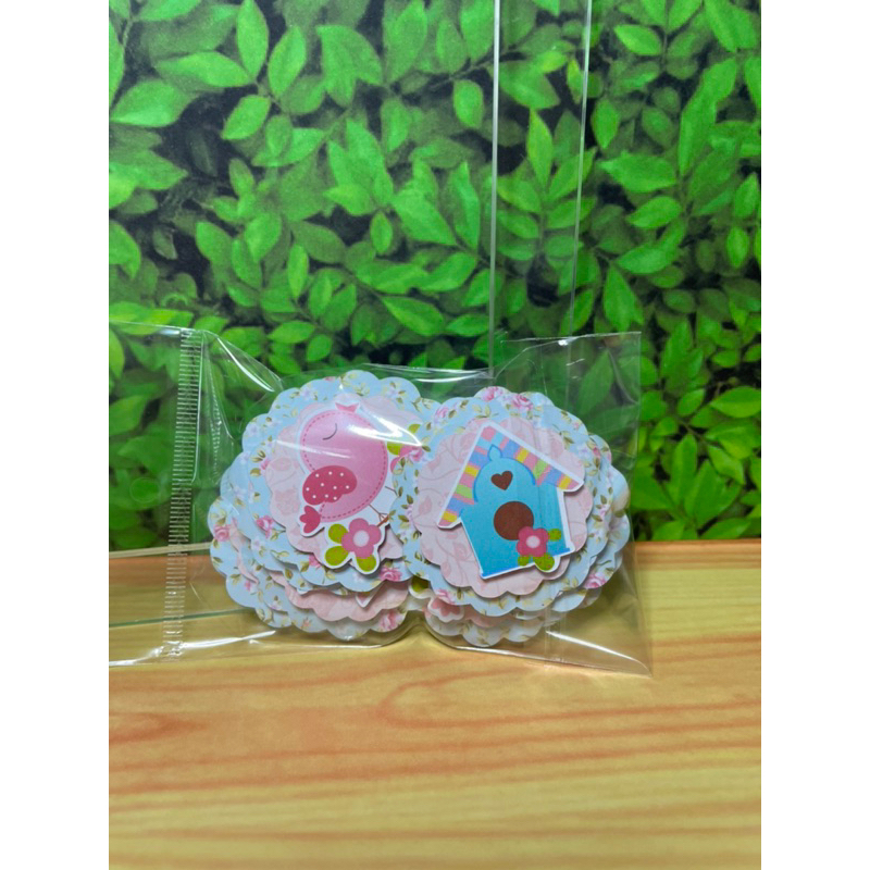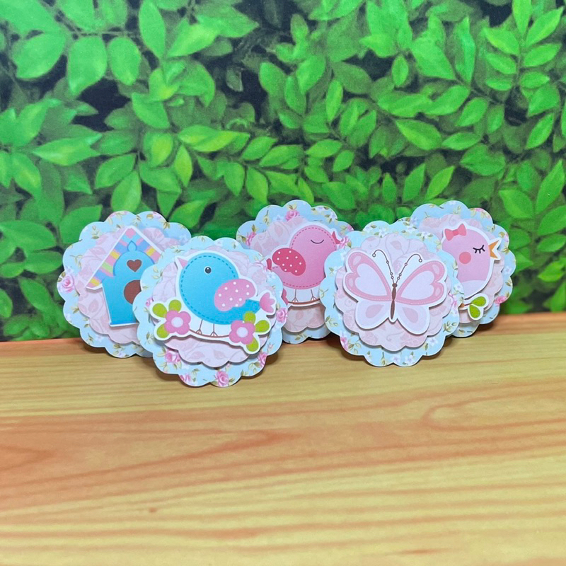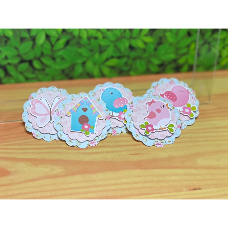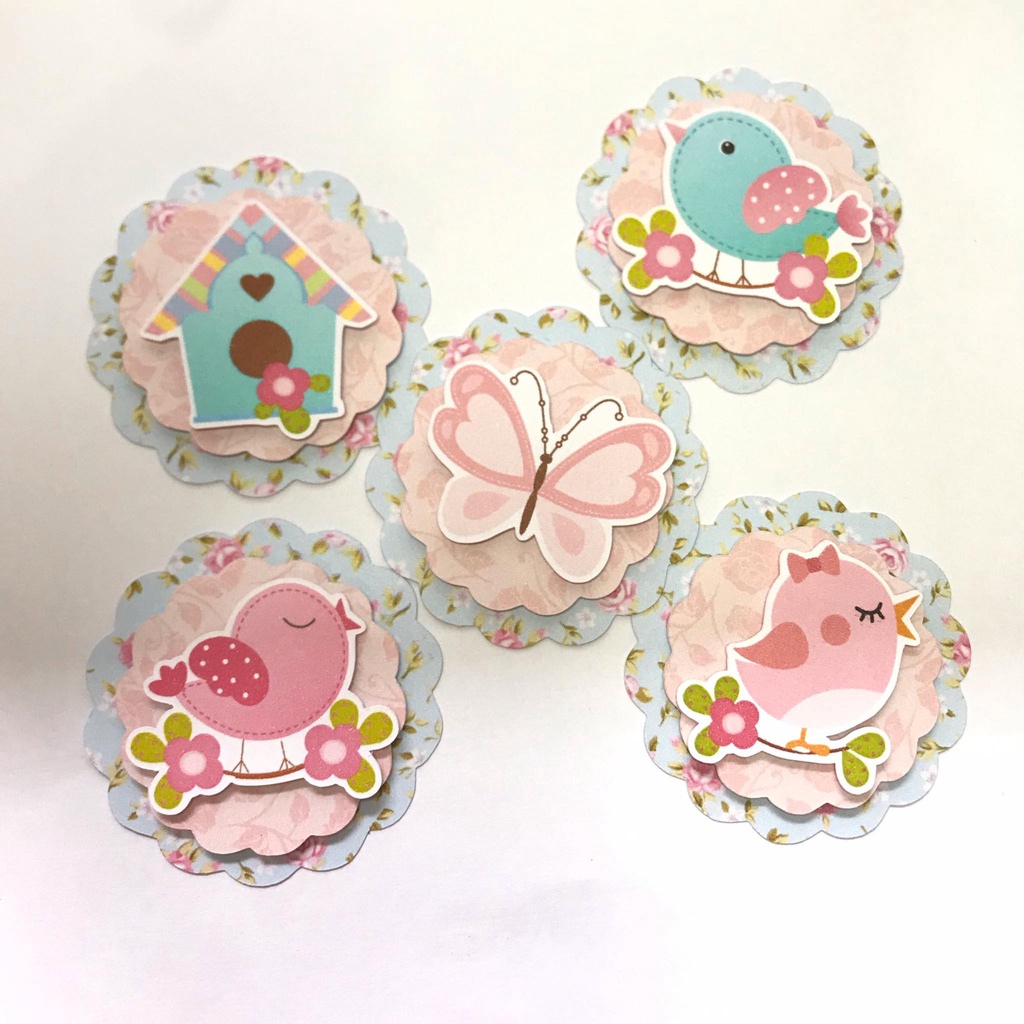 10 Aplique Toppers Tags Jardim Encantado Passarinho Rosa Scrap 3D Faço Todos Temas